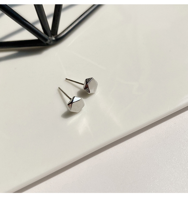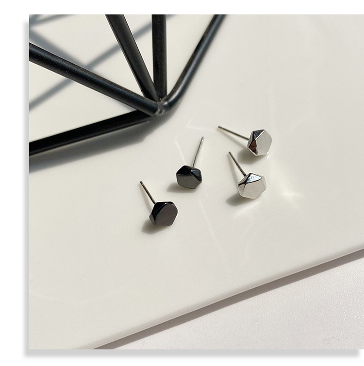 S925 Silver Hexagonal Earrings Men's Black Advanced Sense Neutral American Niche Ear Holes Wholesale Puppies Handsome Earrings