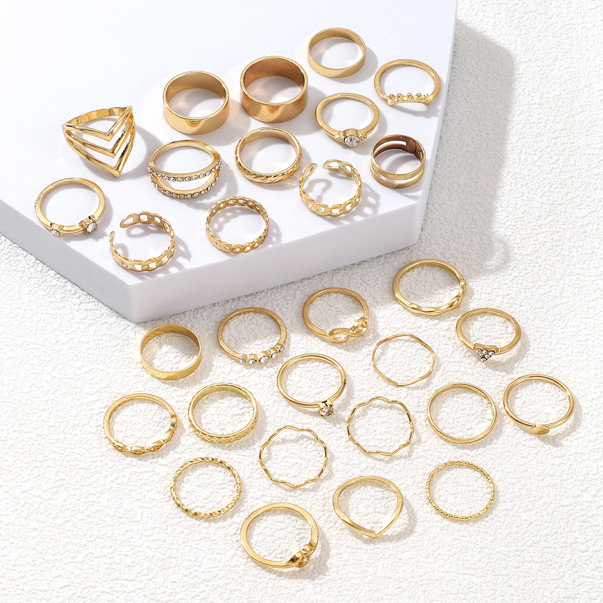 Europe and the United States cross-border explosions love geometric ring opening multi-joint ring irregular ring suit selling 30 pieces