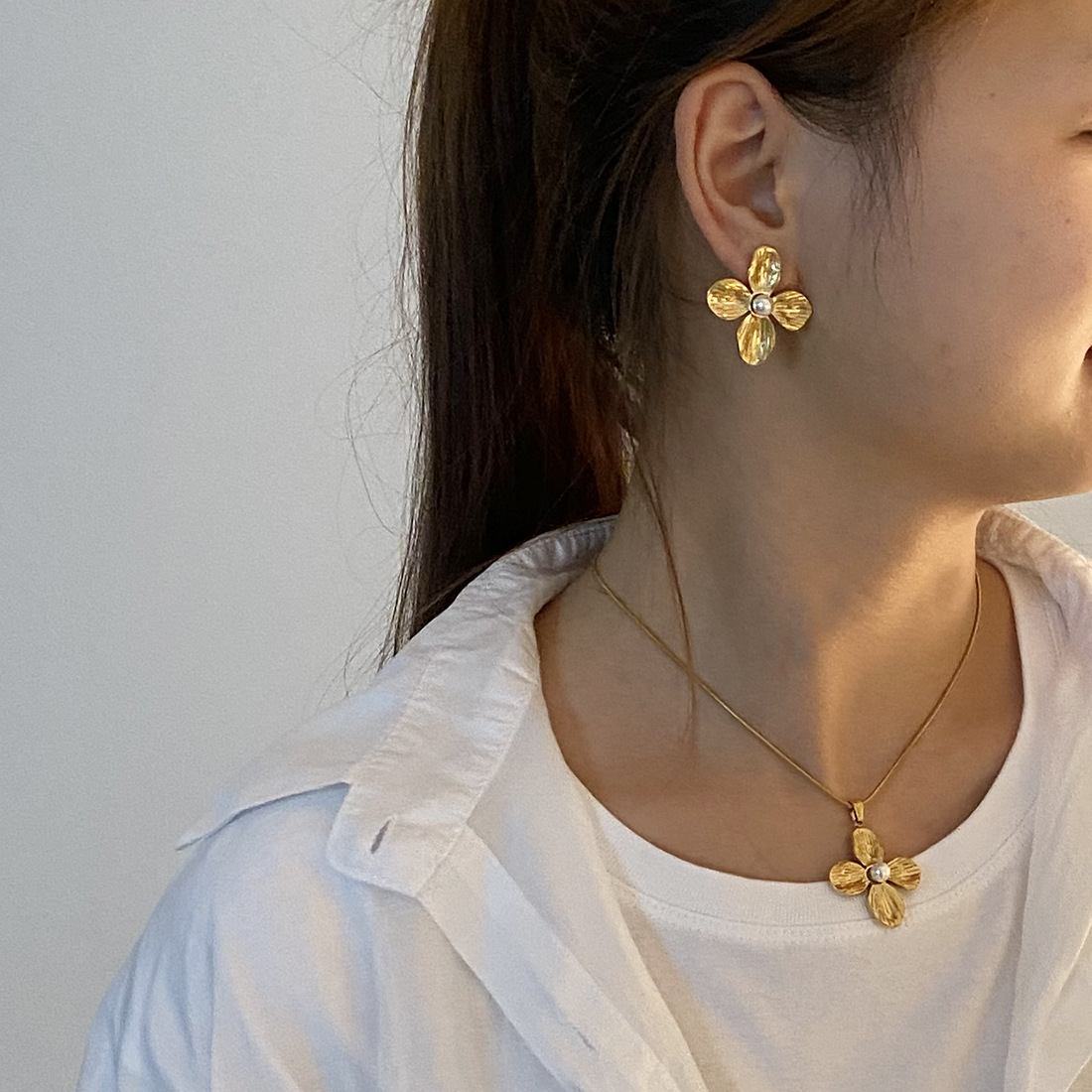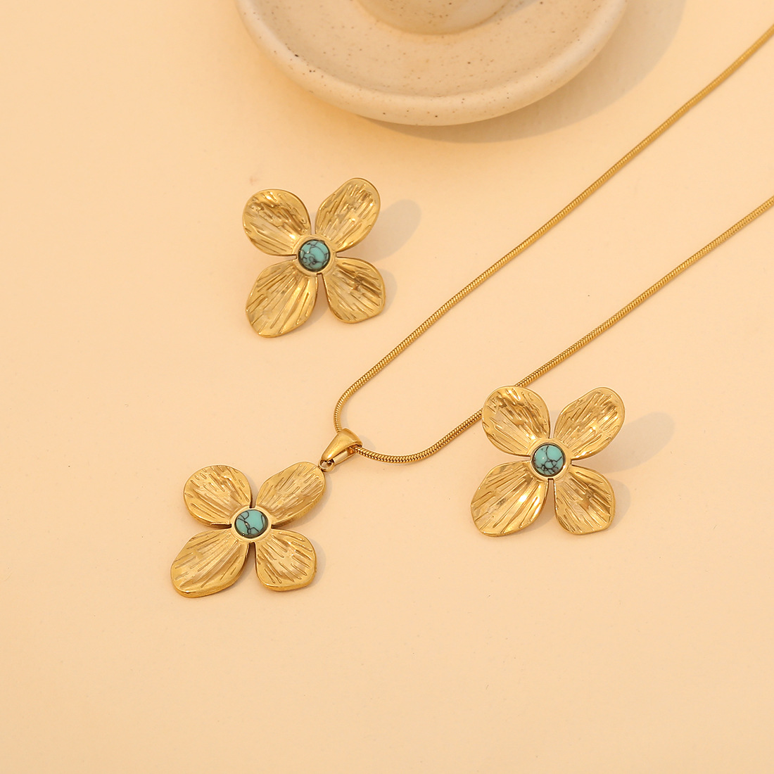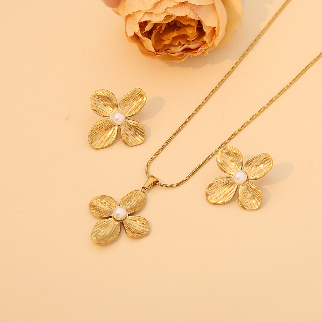 [Ice Meng] Fashion Flower Necklace Temperament Stainless Steel Jewelry suit Europe and the United States Cross-border Exclusive N133