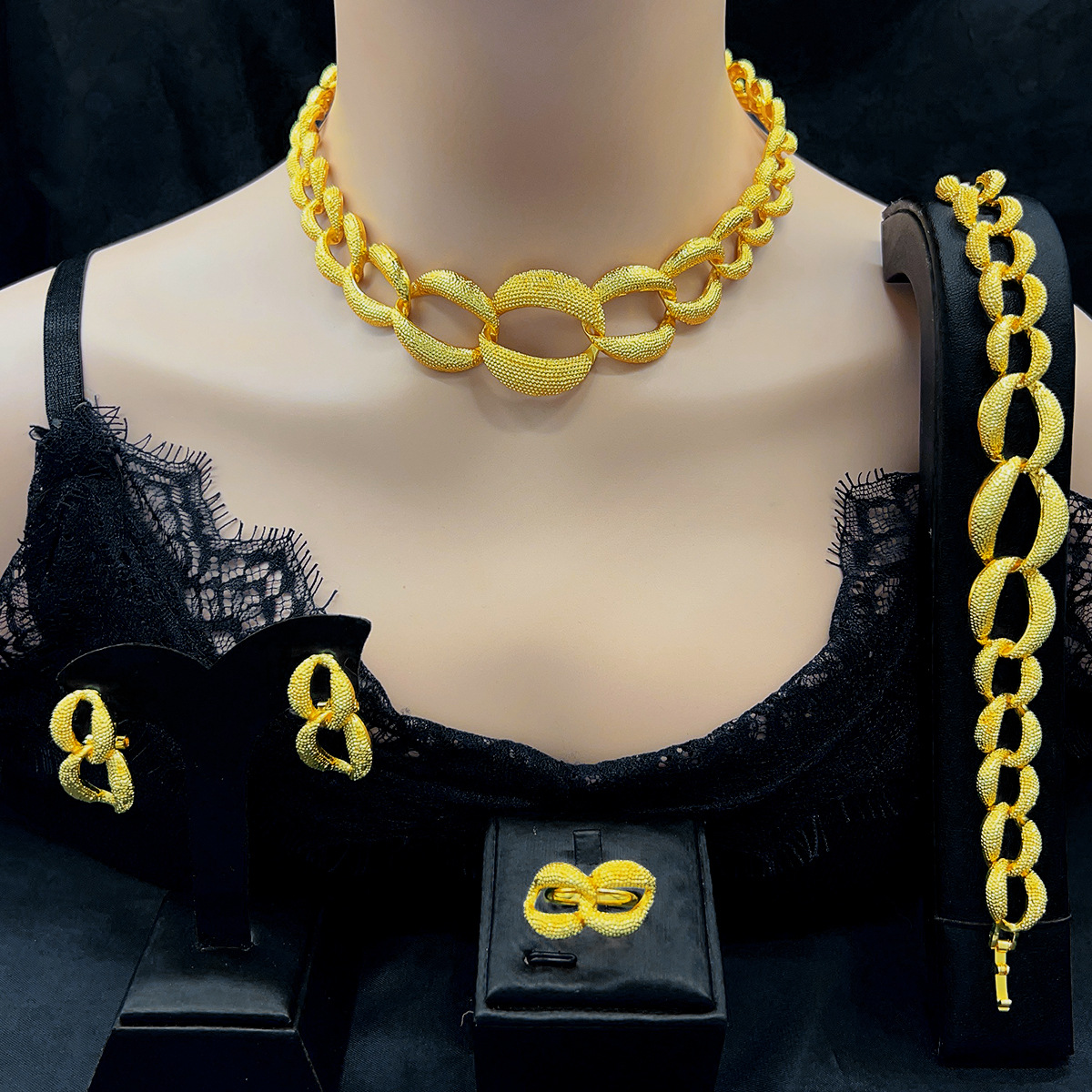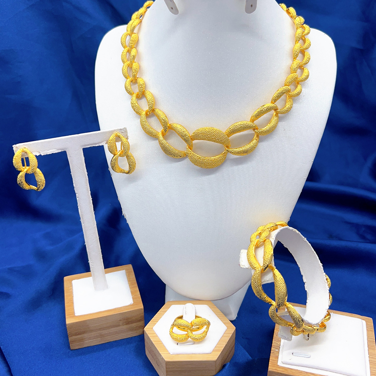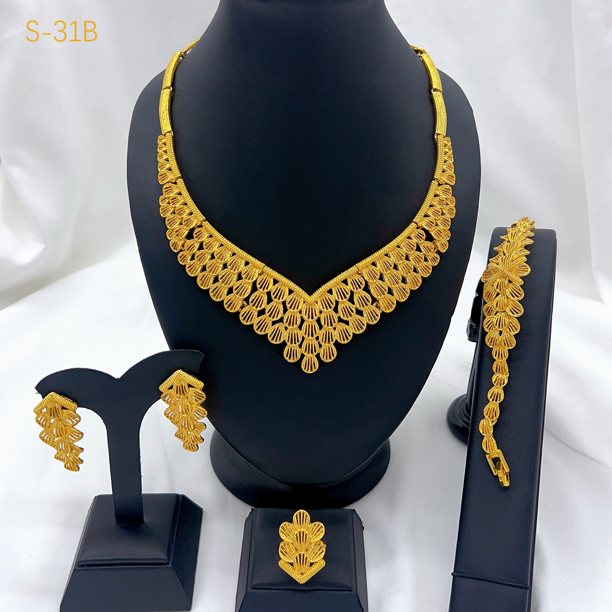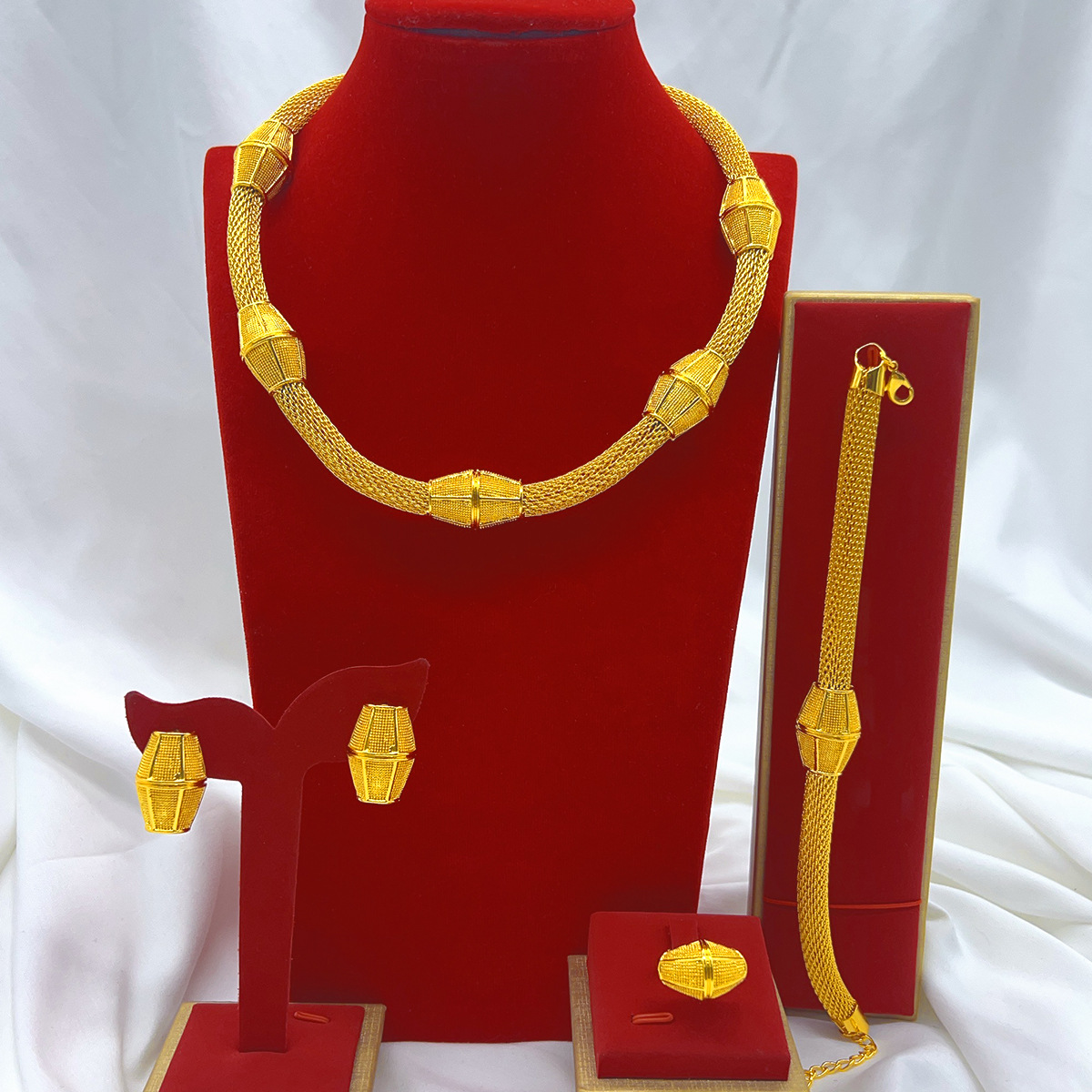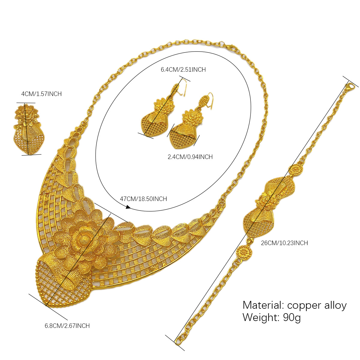 Xinjiang 24k Gold Plated Necklace Earrings Ring Bracelet suit Middle East Dubai India Nigeria Bride Necklace