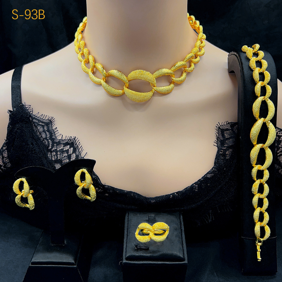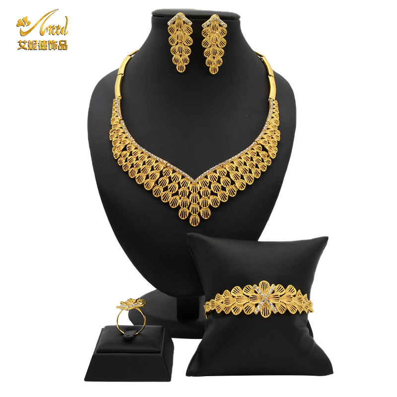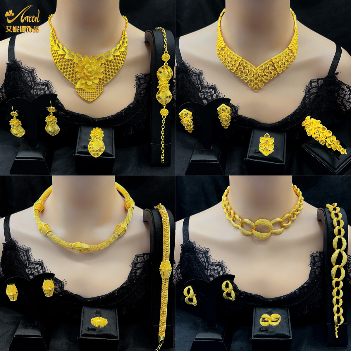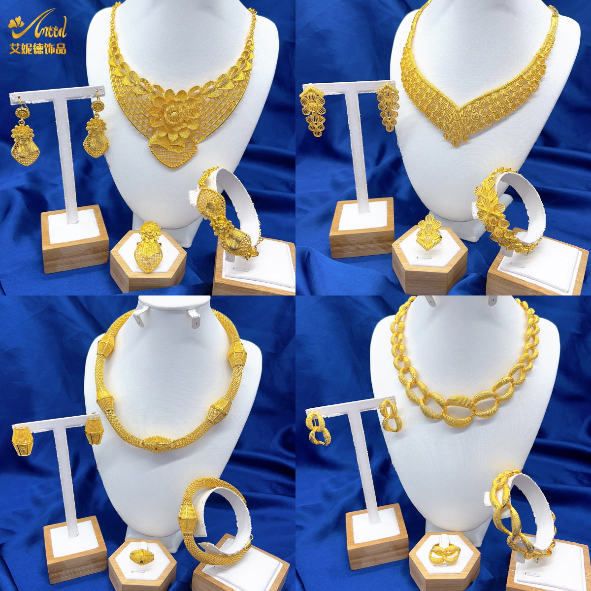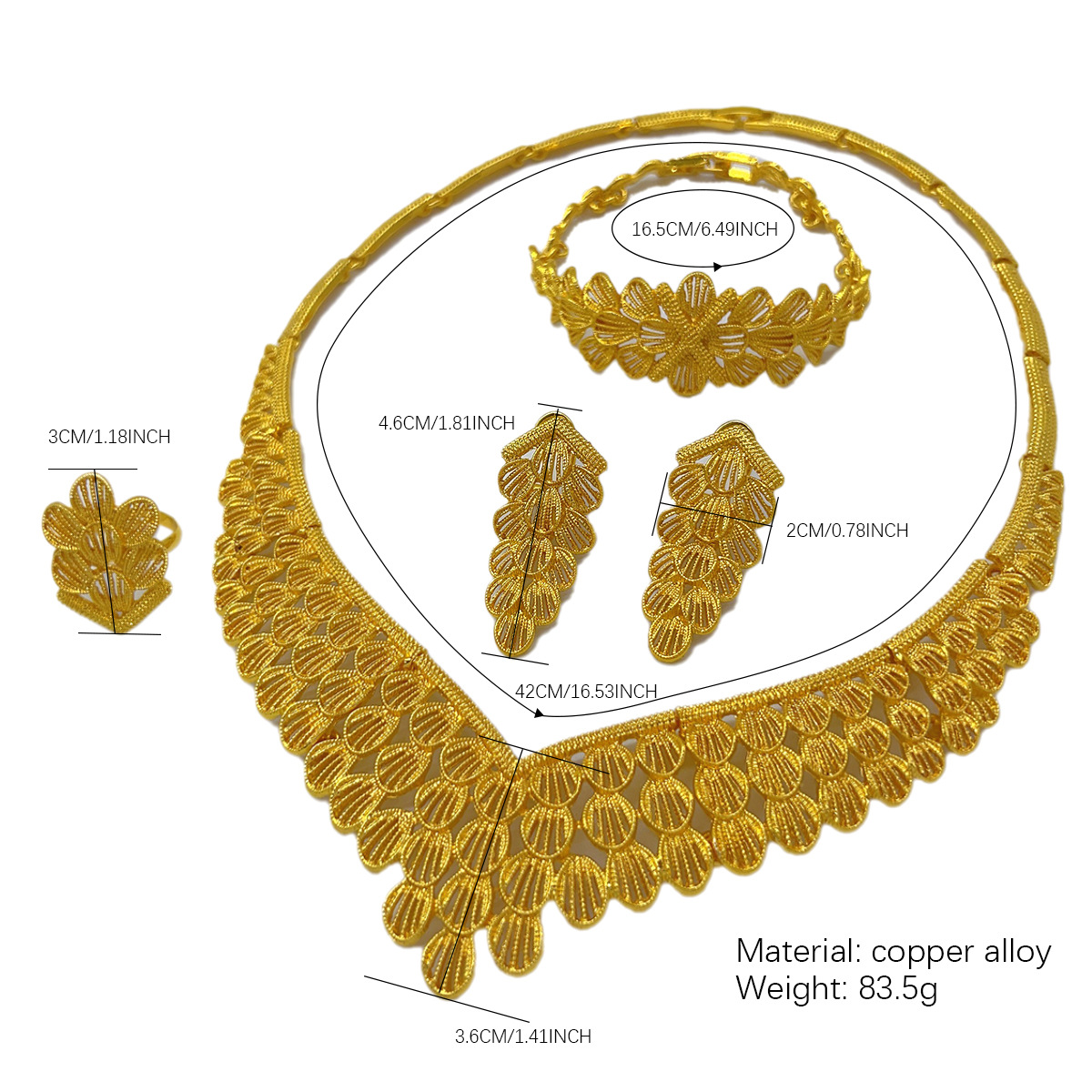Xinjiang 24k Gold Plated Necklace Earrings Ring Bracelet suit Middle East Dubai India Nigeria Bride Necklace