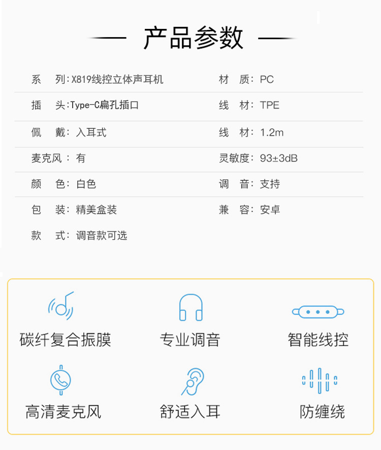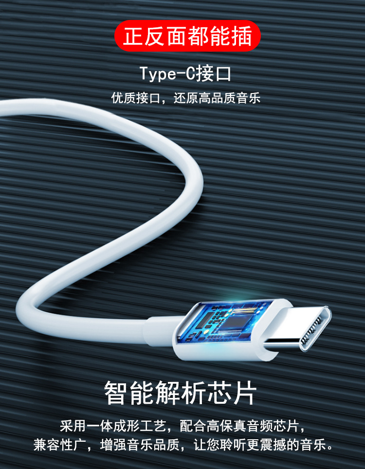 Color: White [type-c digital audio] copper ring speaker x2 bare wire