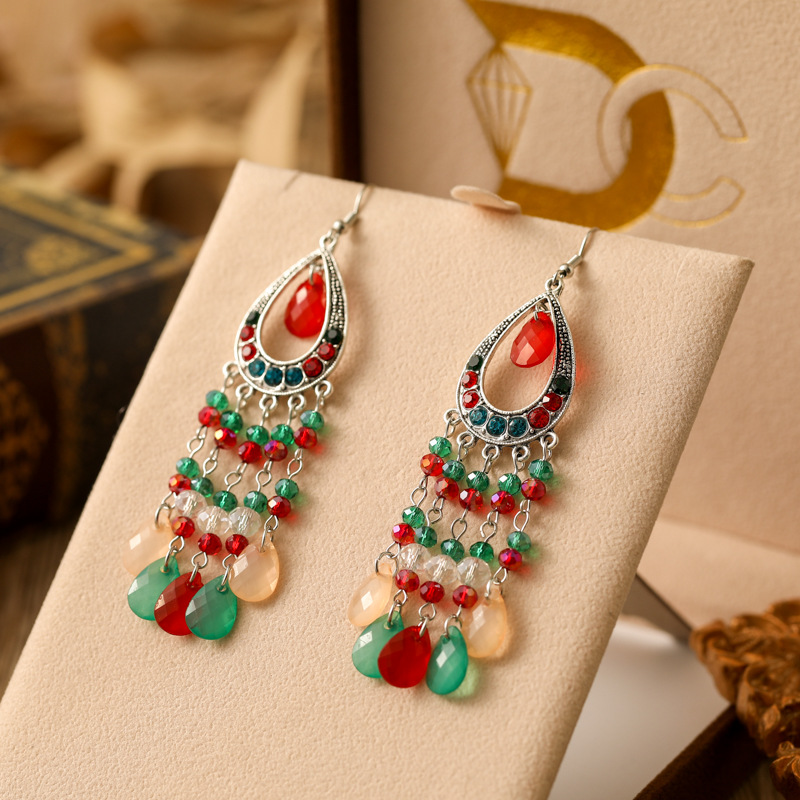2026 Daisy New Style Bohemian Long Earrings for Women Multi-Layered Color-Blocking Crystal Drop Earrings Vintage Water Drop Ear Accessories