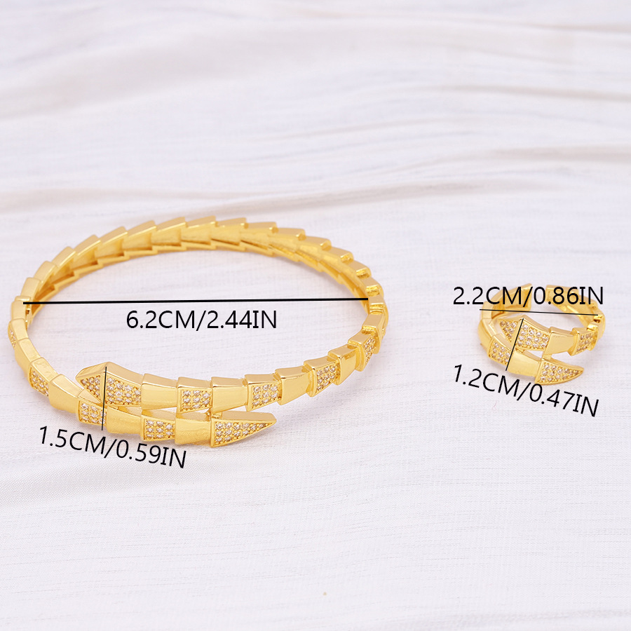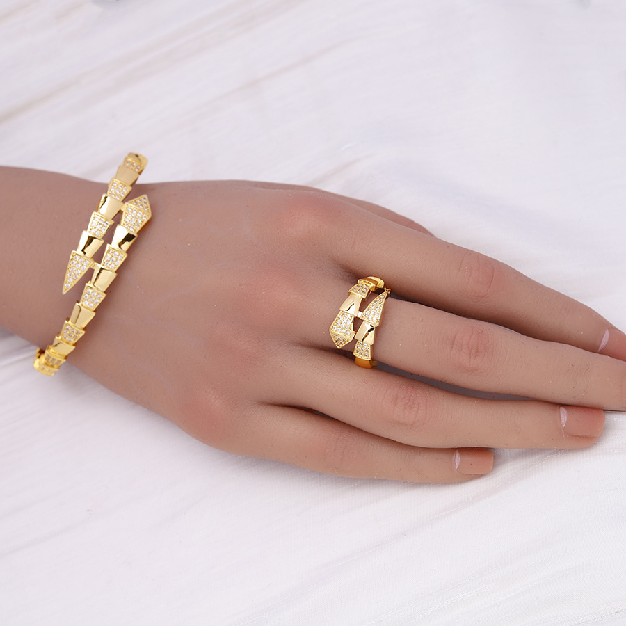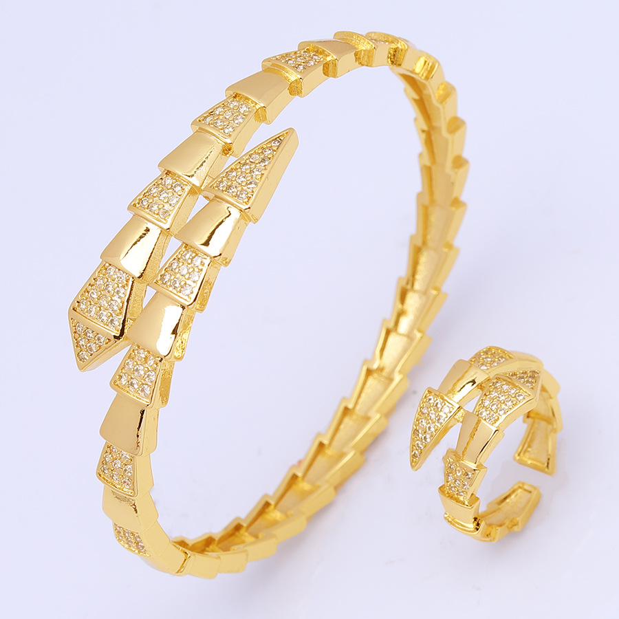Middle East Copper Plated 14K Gold Yellow Diamond Bangle Ring Set Dubai Women Bridal Luxury Wedding Accessories