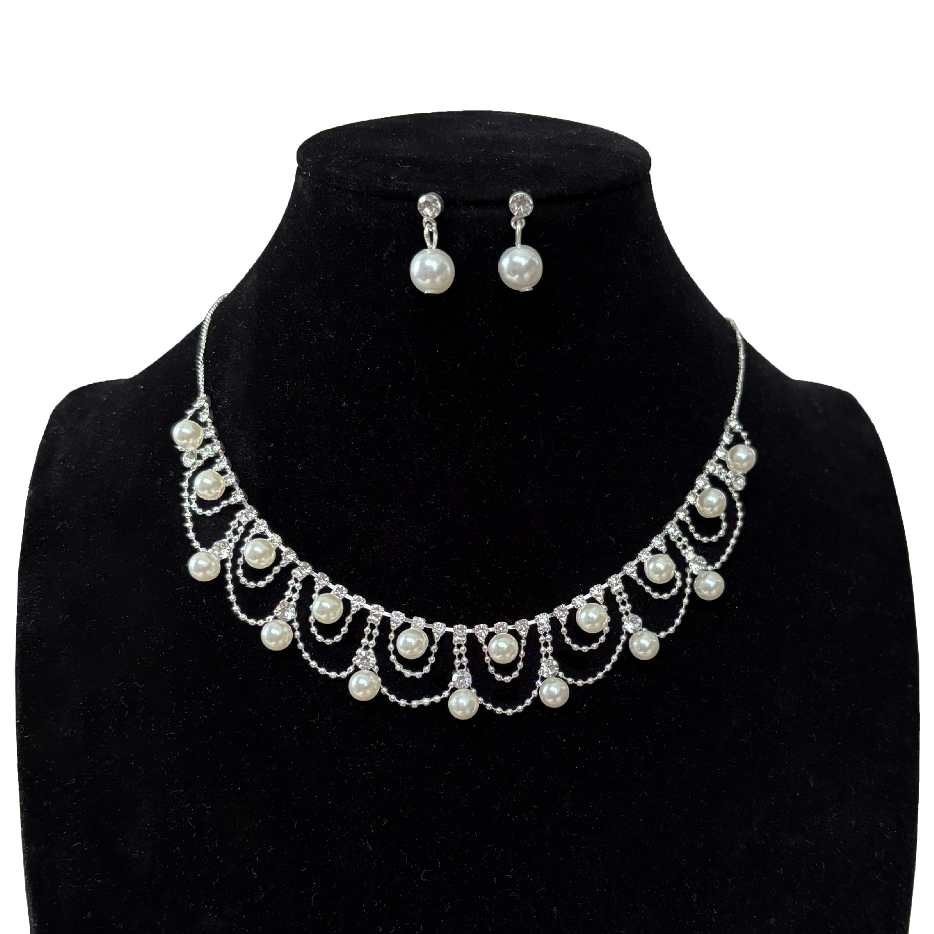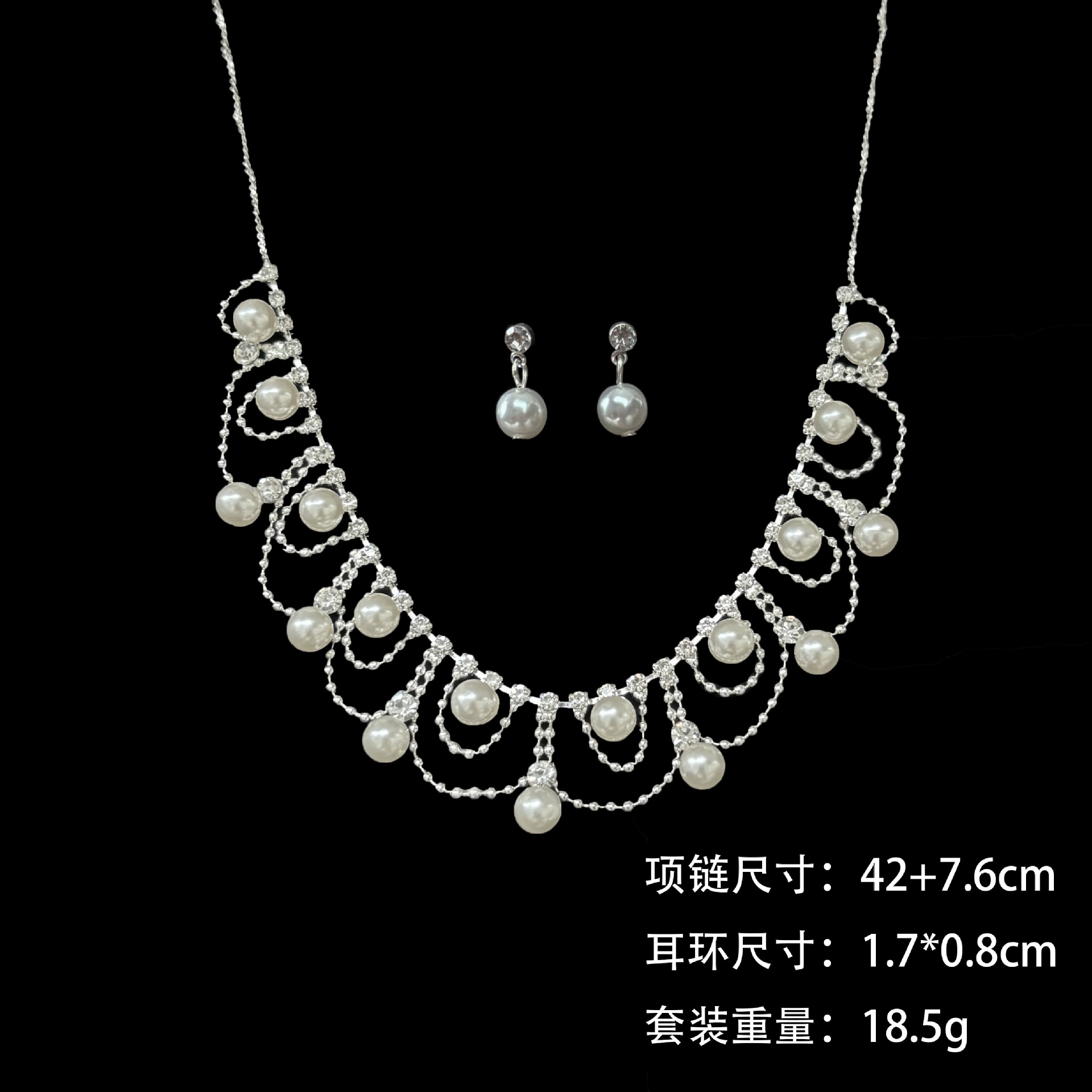 European and American fashion women's jewelry earrings necklace two-piece bride pearl jewelry suit dress dinner accessories wholesale