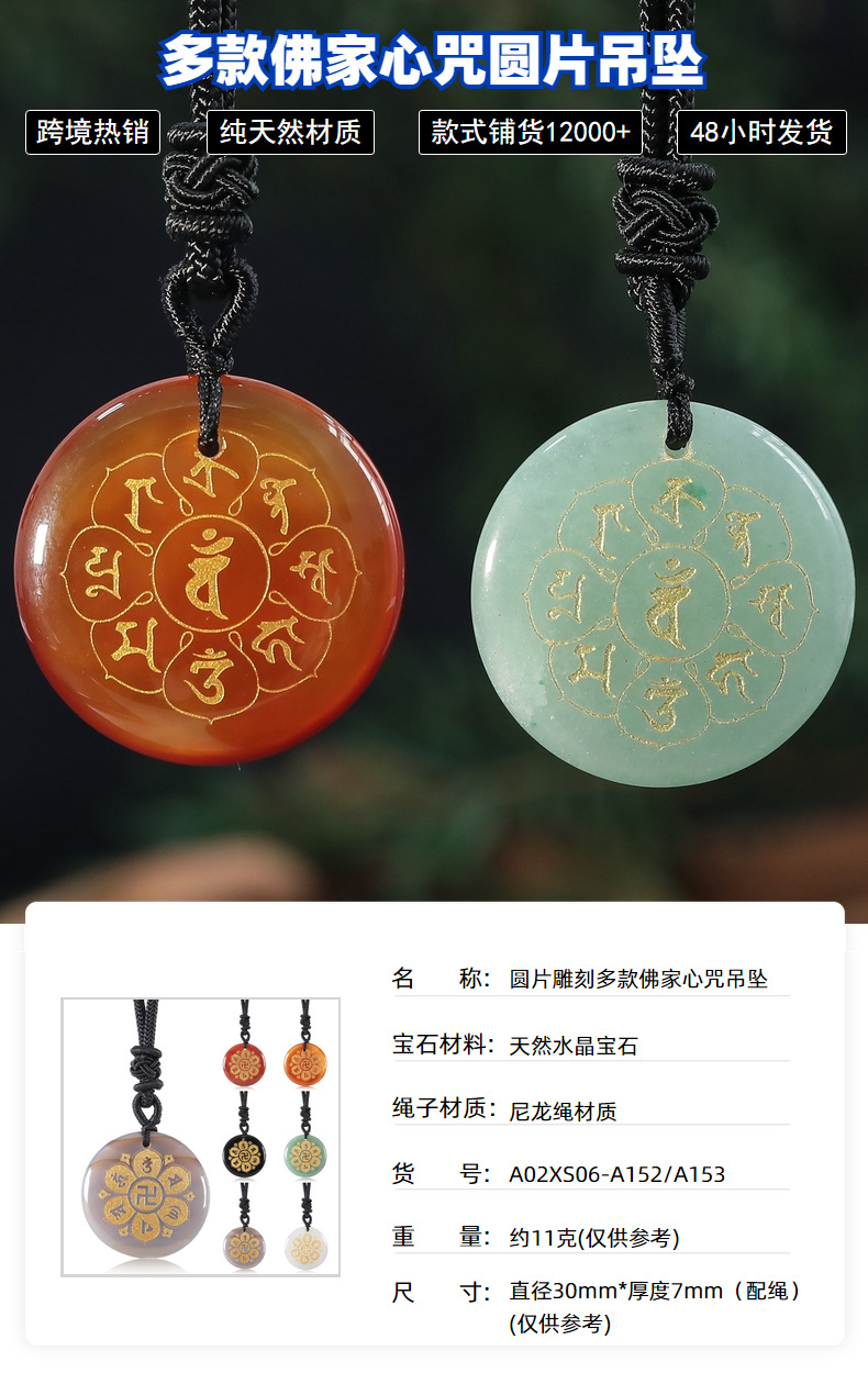 Buddhist Culture Heart Curse Religious Necklace Natural Crystal Jewelry Pendant High-end Tourist Souvenir Necklace