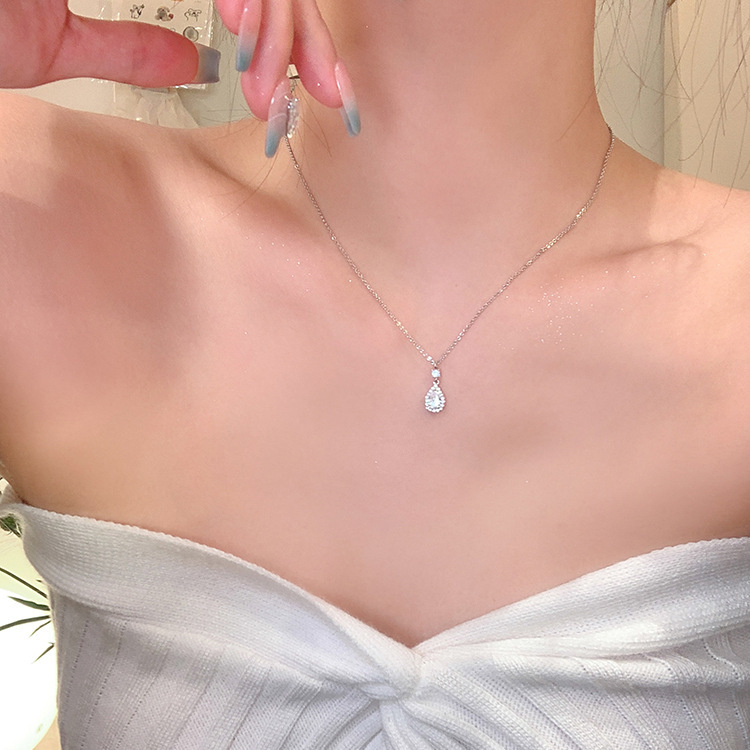 2025 New Autumn and Summer Hot-Selling Water Drop Necklace for Women Niche Accessible Luxury High-End Full Diamond Pendant Design for Girls