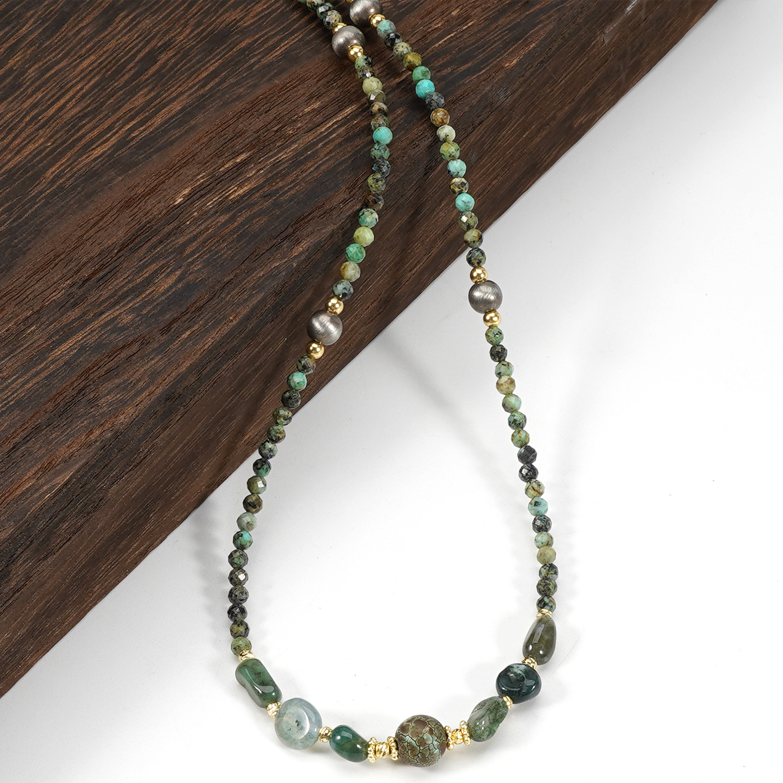 Cross-border exclusive for 3cm African pine crystal Indian jade with stone agate natural stone necklace clavicle chain in stock wholesale