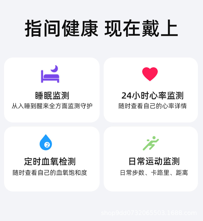 Smart ring: Step count, distance, calorie calculation, heart rate, blood oxygen saturation, blood pressure, sleep tracking