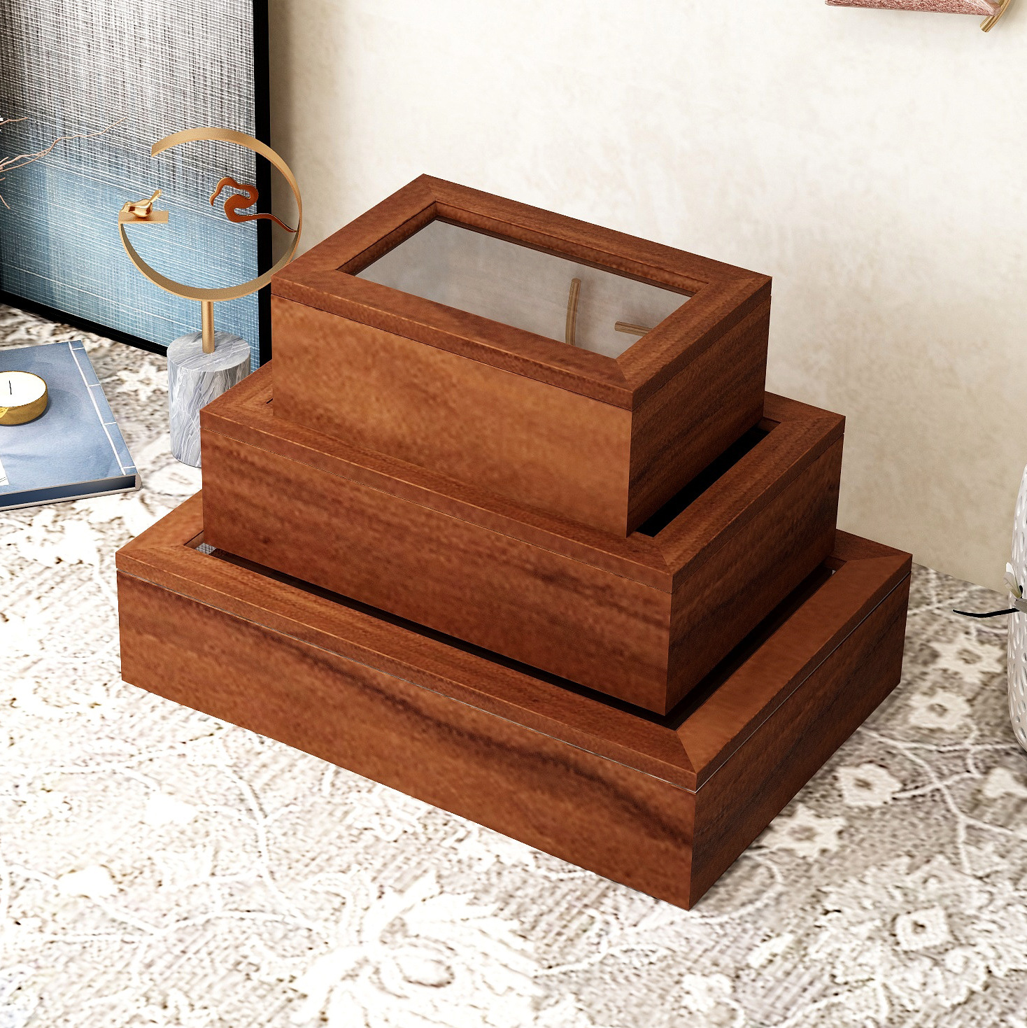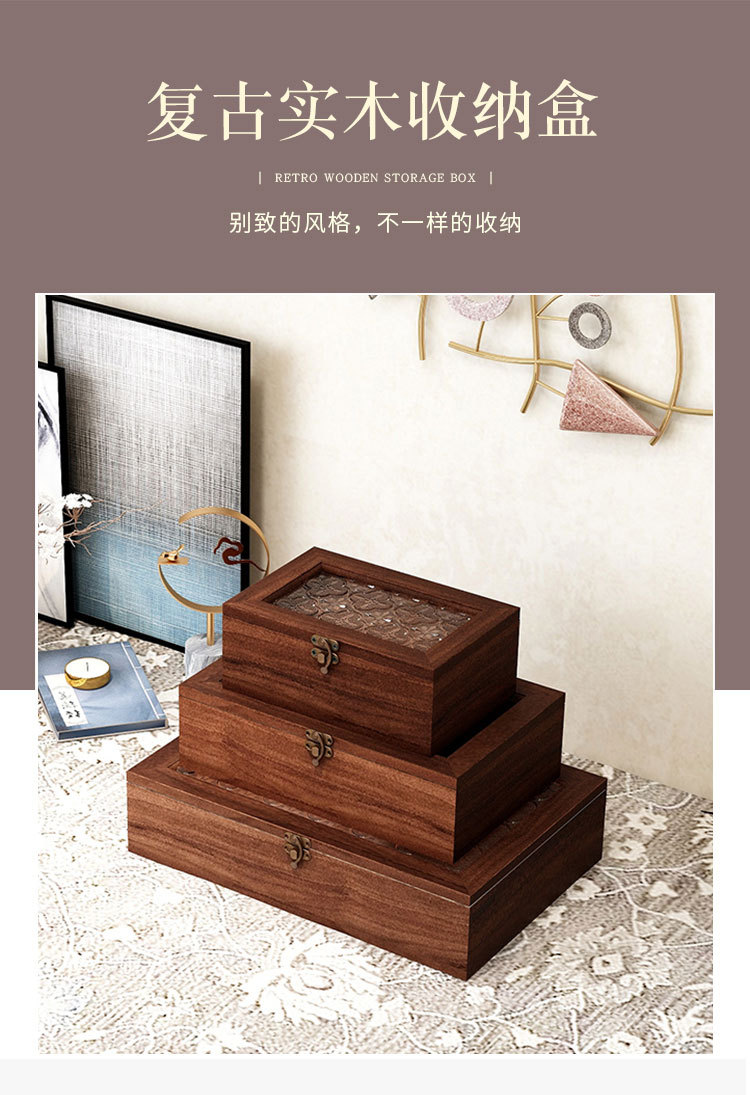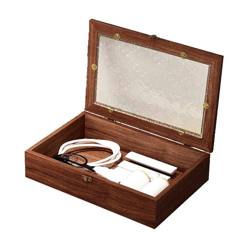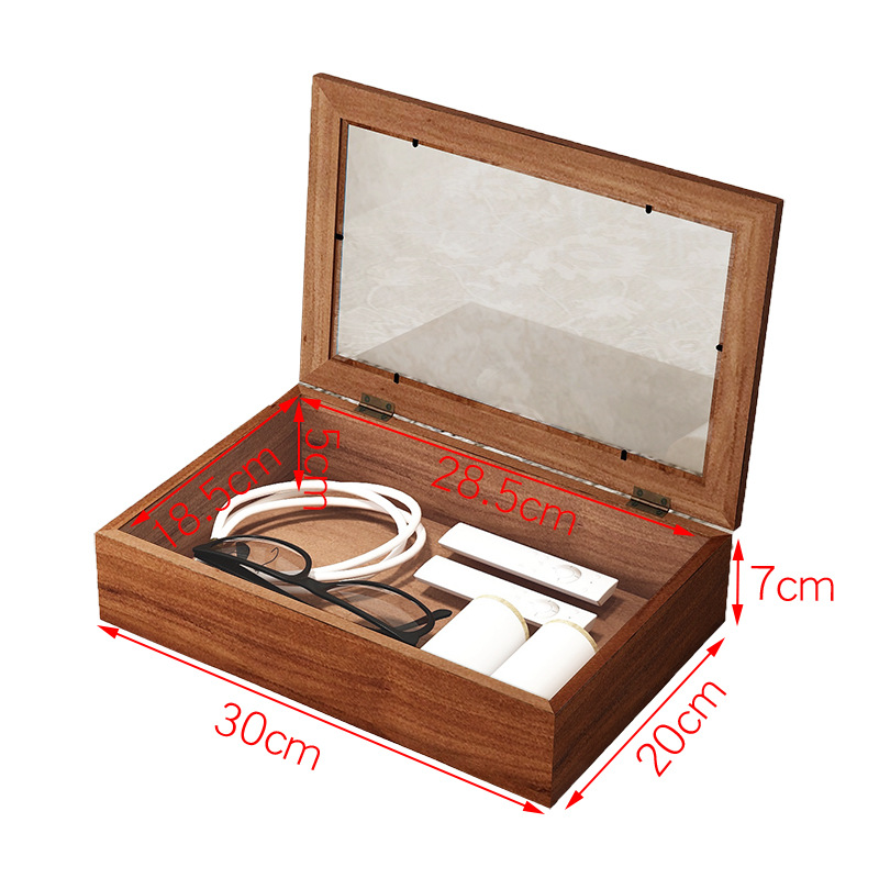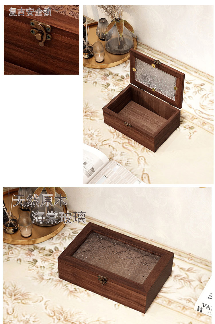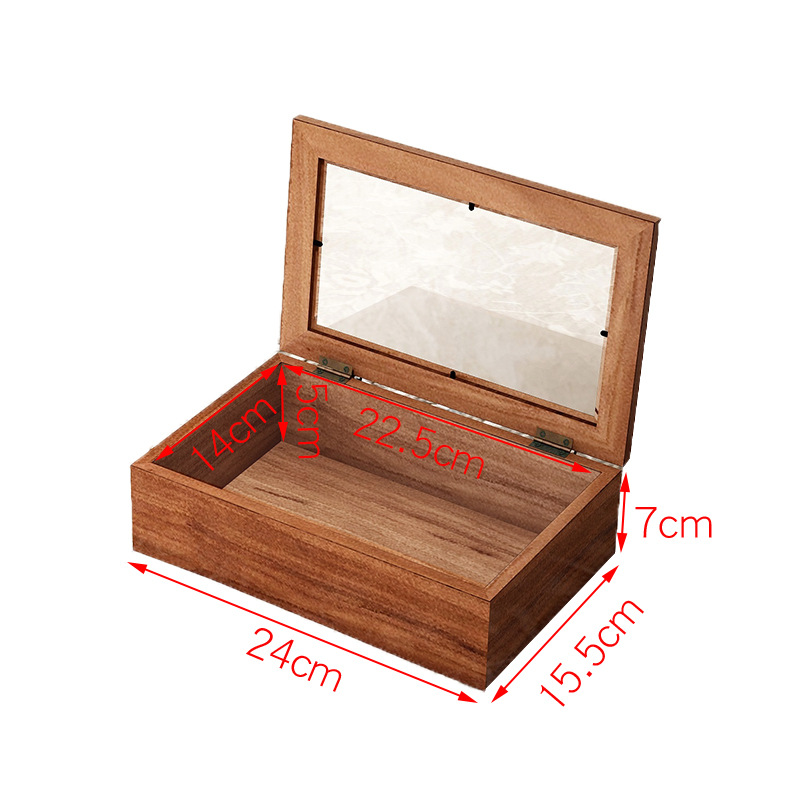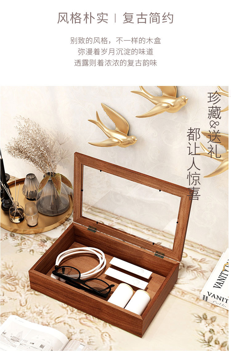 Flip Small Wooden Box Glass Gift Box Vintage Wooden Storage Box Desktop Jewelry Box Jewelry Finishing Walnut Play