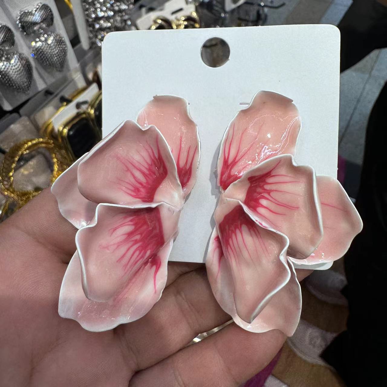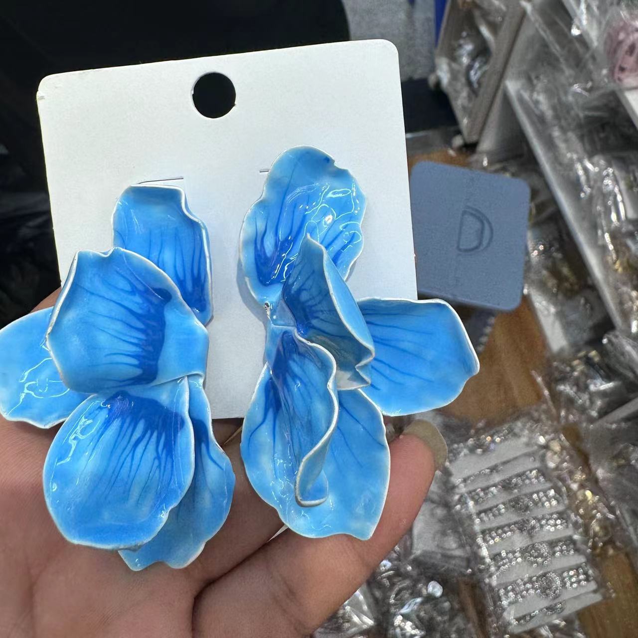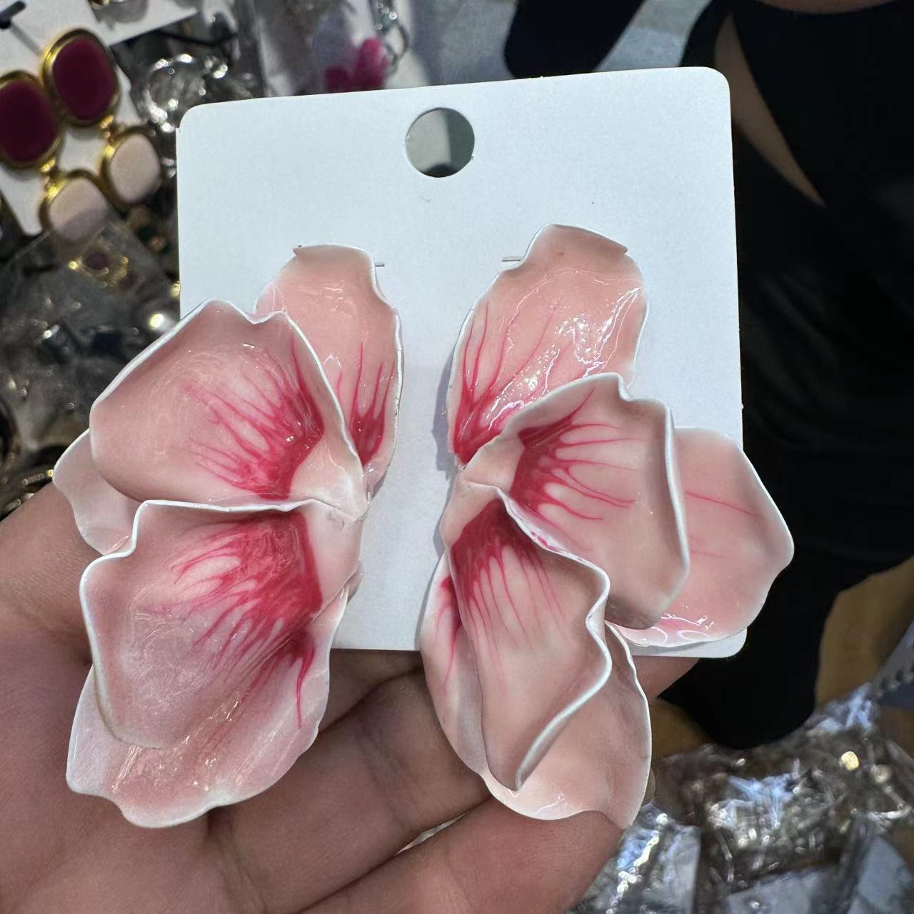 Za European and American fresh pastoral style alloy oil drop flower earrings fashion atmosphere design sense flower earrings earrings women