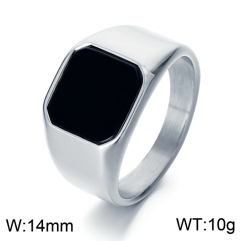 Domineering retro amber stone jewelry European and American trend stainless steel square black agate men's ring straight batch