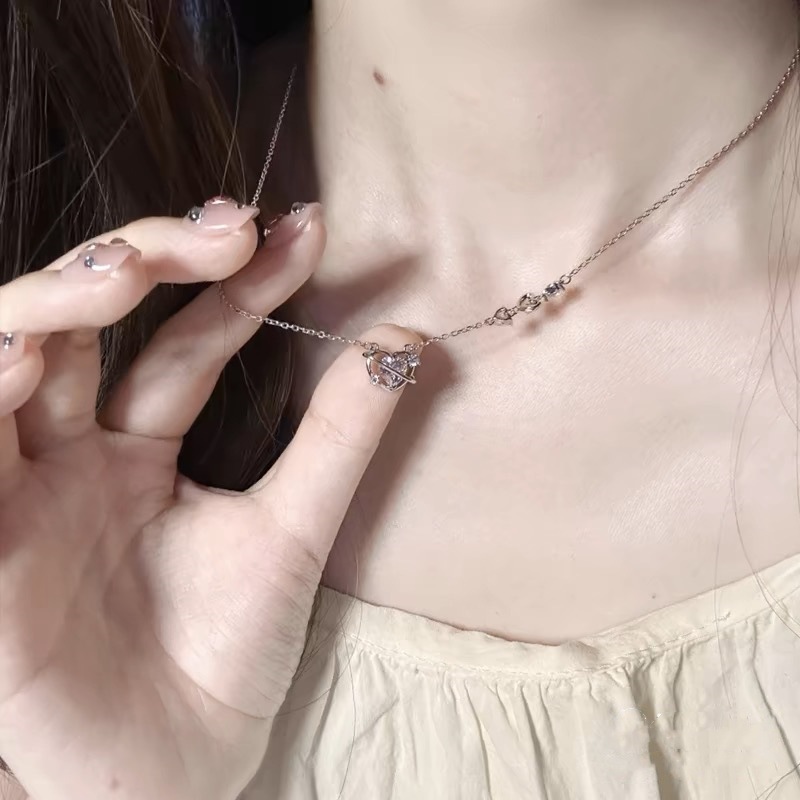 Love Heartbeat Necklace Women's Summer 2024 New Niche Design Sweet and Cool Love Clavicle Chain Sweetheart Spice Style