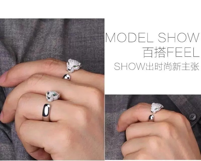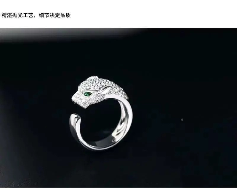 Trendy European and American Light Luxury Fashion Men's Leopard Print Open Ring with Platinum-Plated Micro-Paved Zircon, Artistic Retro Style