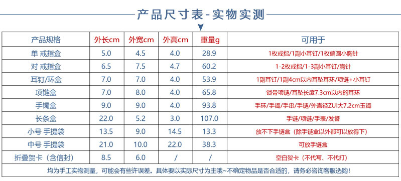 Specification model: Red; 1 ring box [only the box does not include gift bag ribbon greeting card]