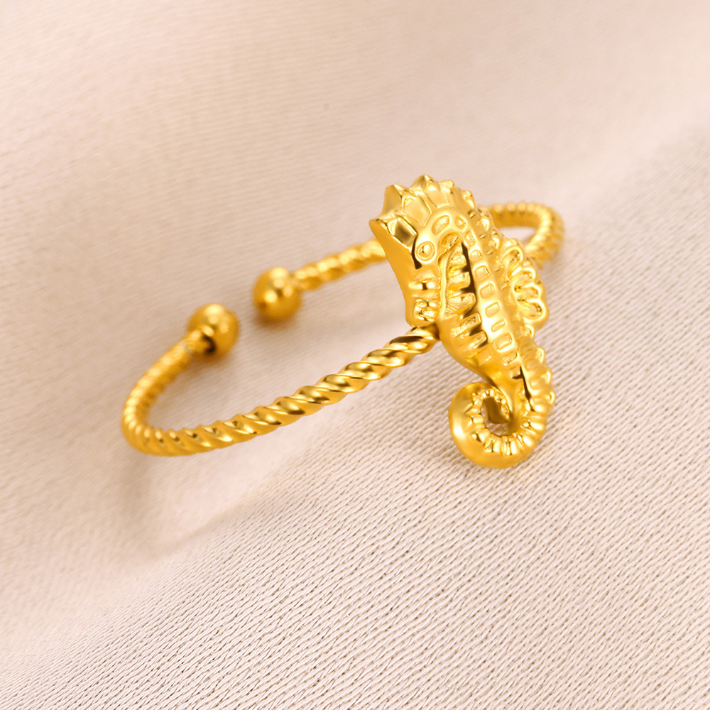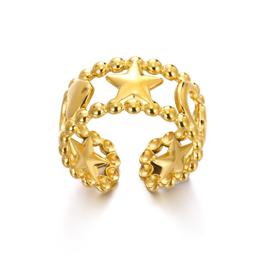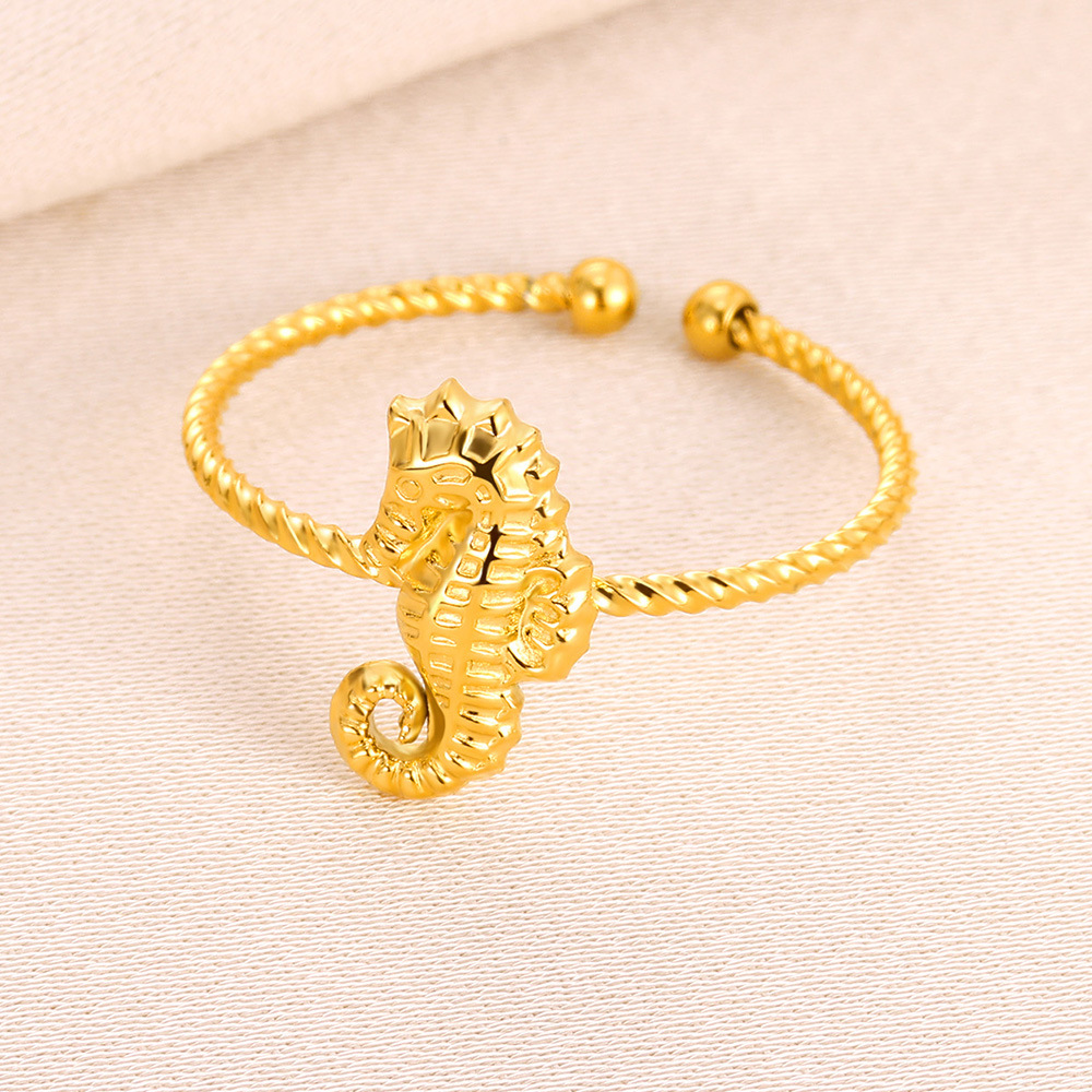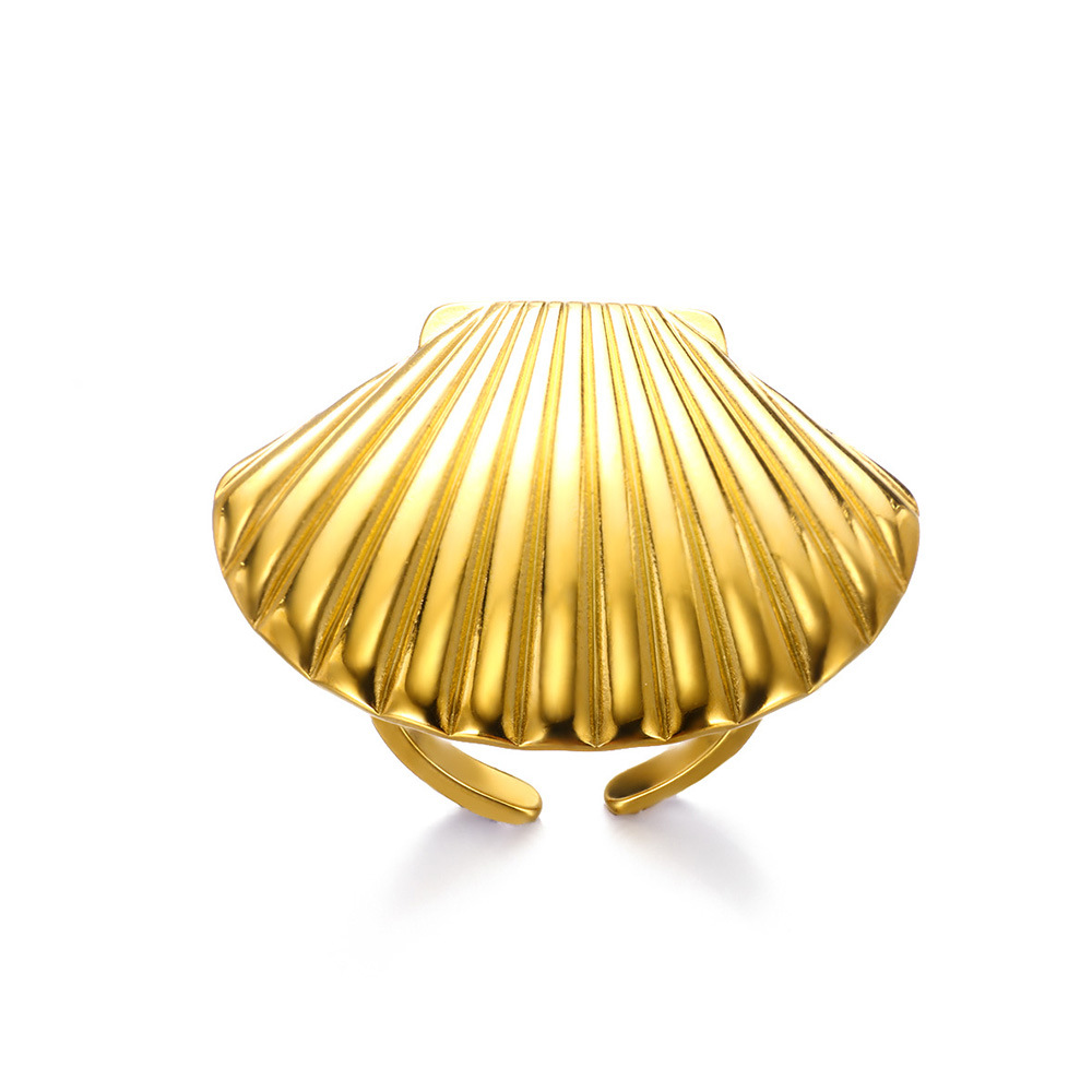 European and American Cross-Border Hot-Selling Ocean Series 18K Gold Stainless Steel Starfish Shell Ring Niche Versatile Jewelry Wholesale