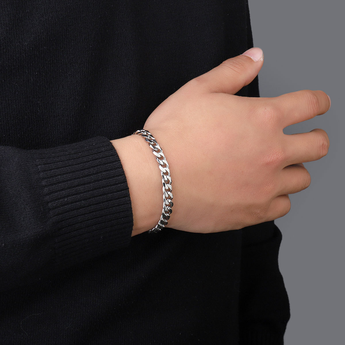 Titanium steel hip hop Cuban chain bracelet men's 7mm six-sided mill high street neutral hot girl female stainless steel hand jewelry