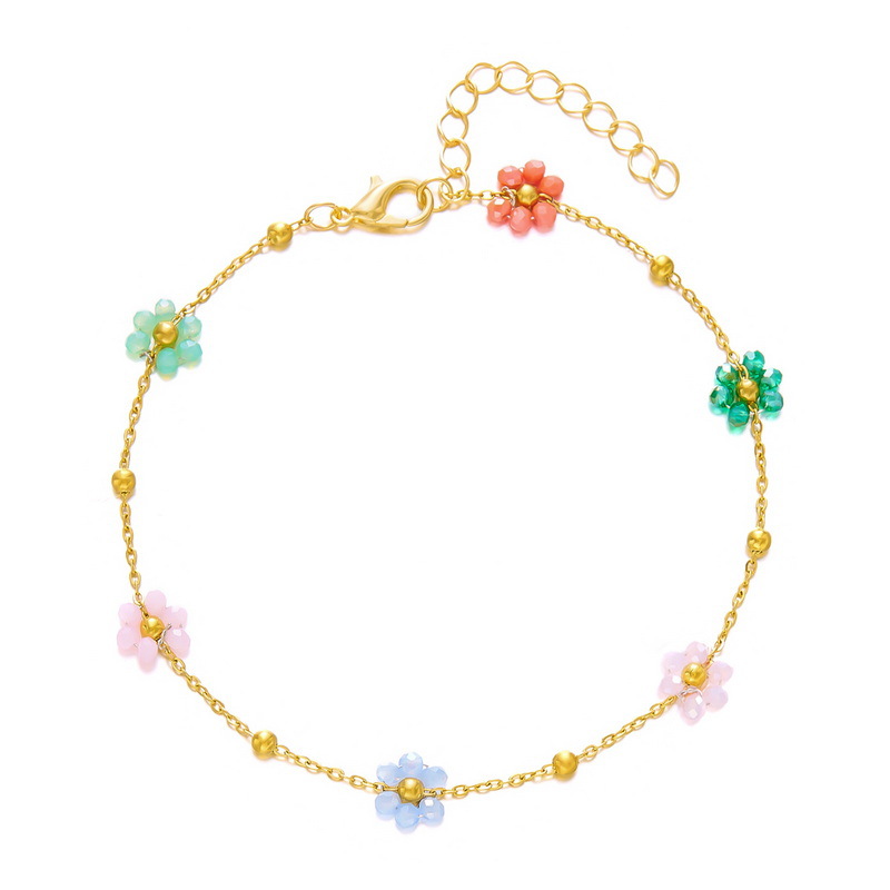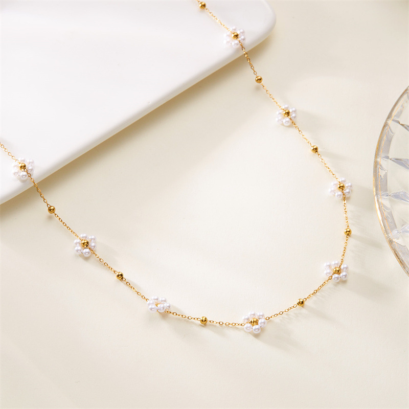 Cross-border New Ins Holiday Style Fresh Flower Beaded Necklace Bracelet Small Flower Choker Summer Clavicle Chain
