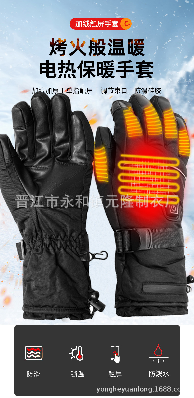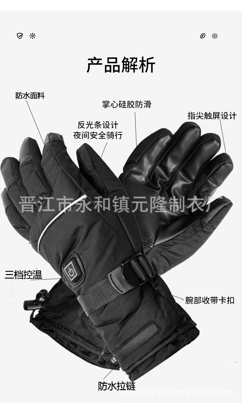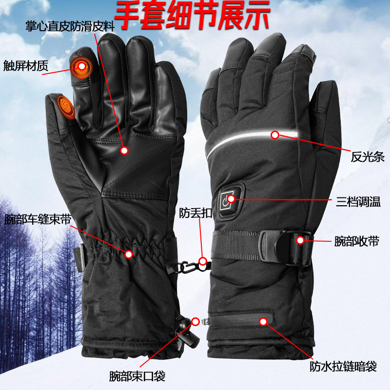 Outdoor winter electric heating warm cold-proof heating gloves men's ski riding smart USB electric heating touch screen
