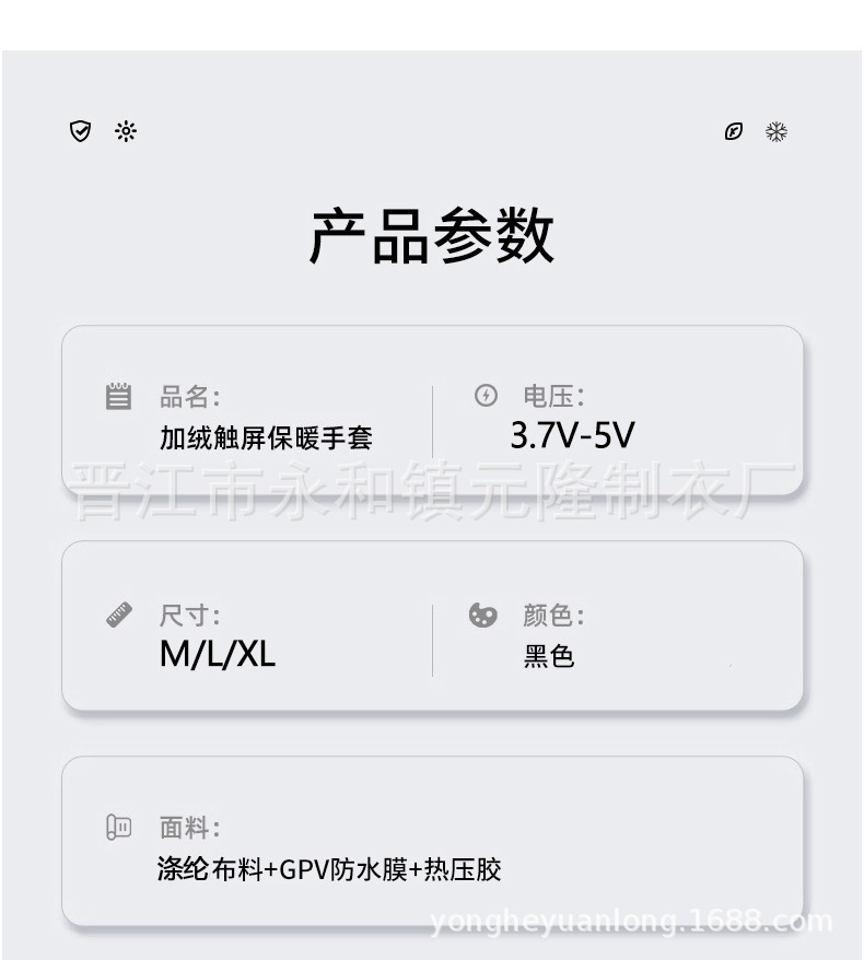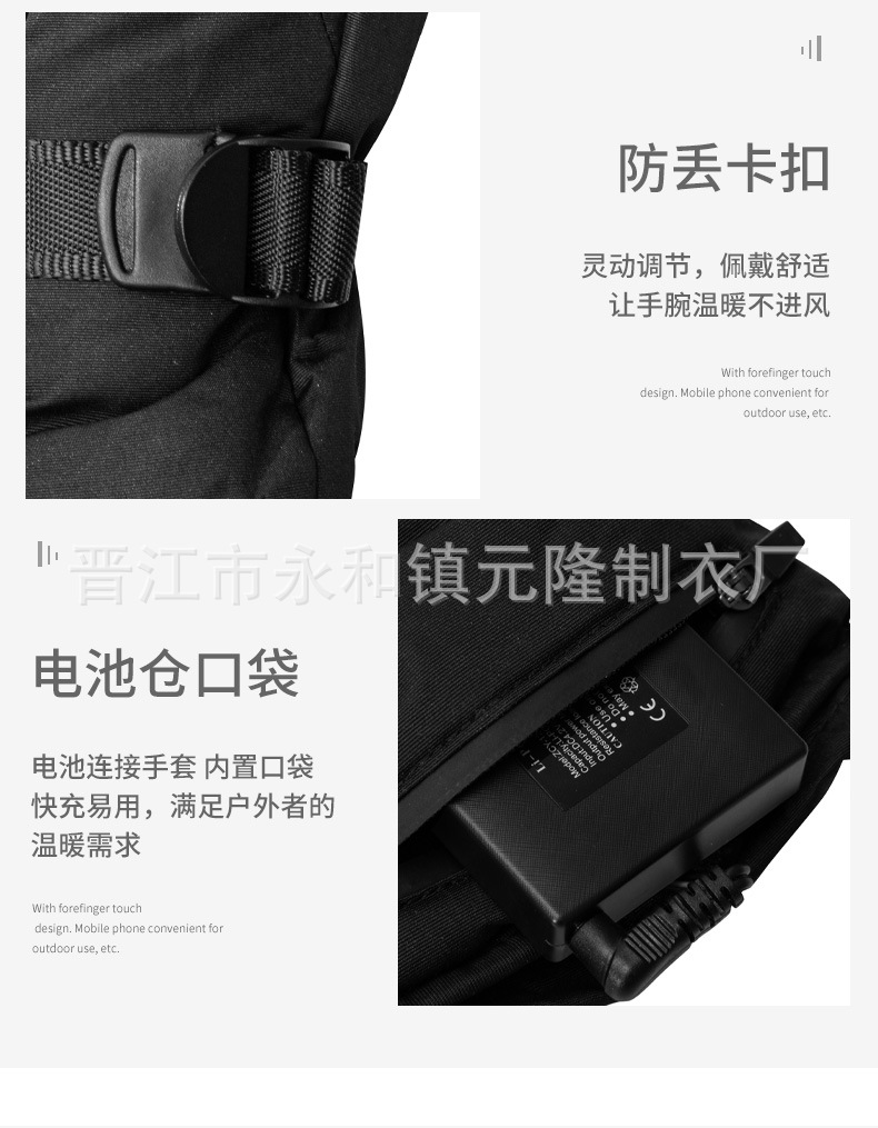 Color: One pair of black gloves (no battery)
