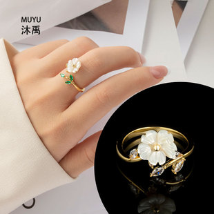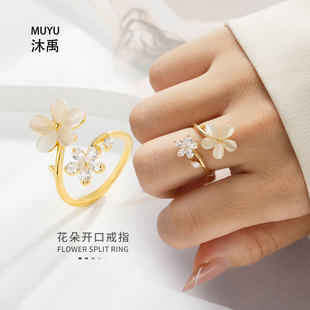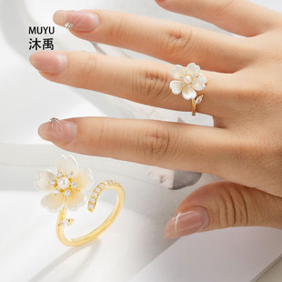 时尚轻奢风贝壳花朵开口戒指小众设计简约百搭食指戒新品爆款戒圈