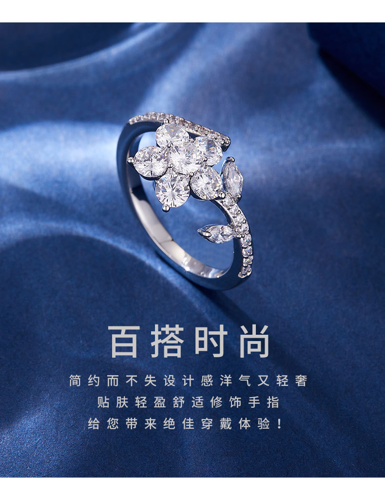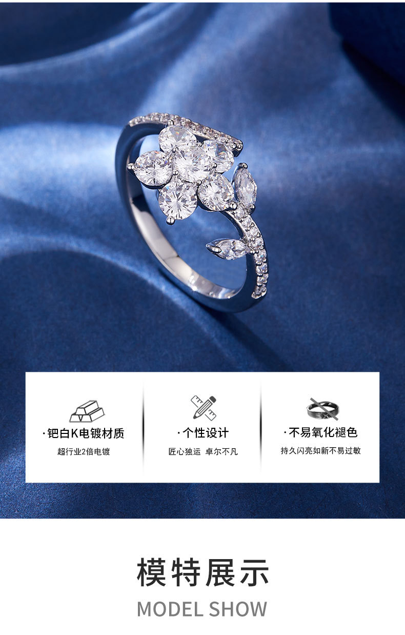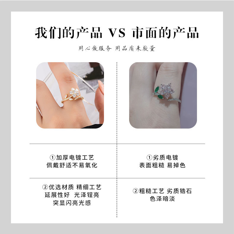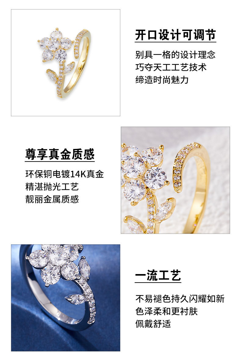 韩国网红甜美花朵开口戒春夏新款三朵花食指戒轻奢风微镶精致戒圈