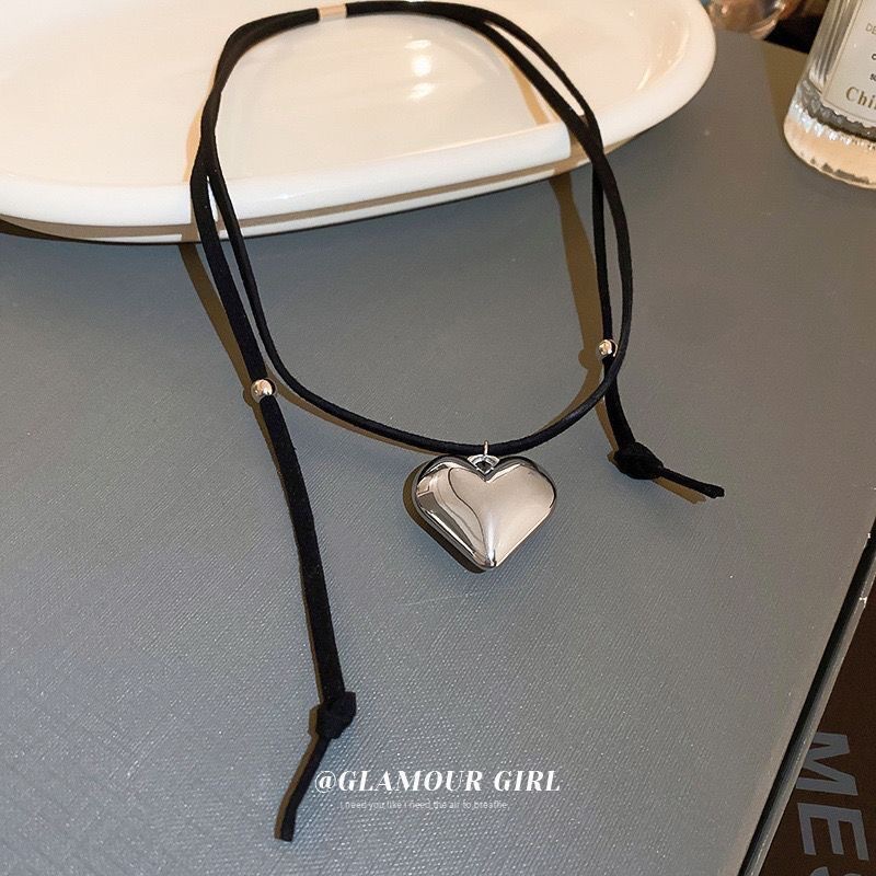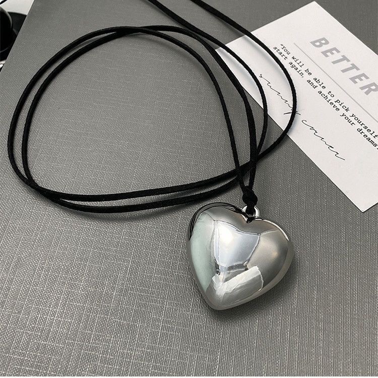 American Style Fashion Pull-out Adjustable Heart-shaped Necklace Women's Simple Personality Big Love Pendant Necklace Personality Trend