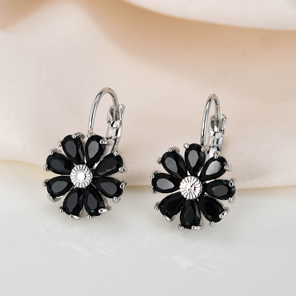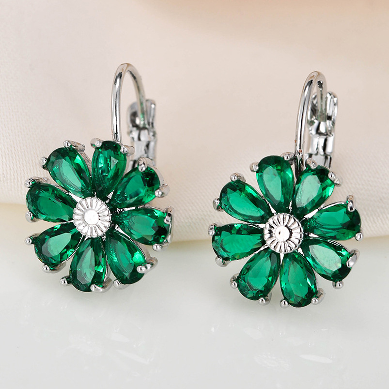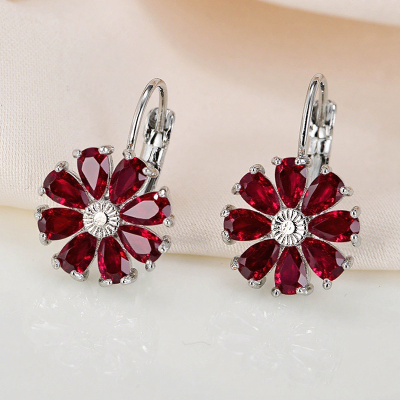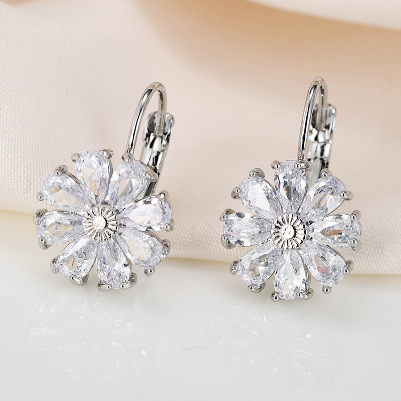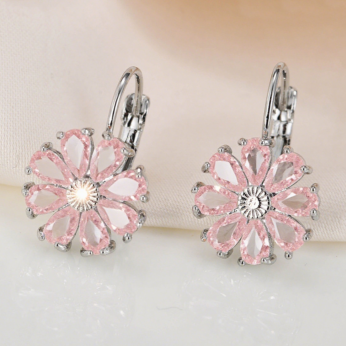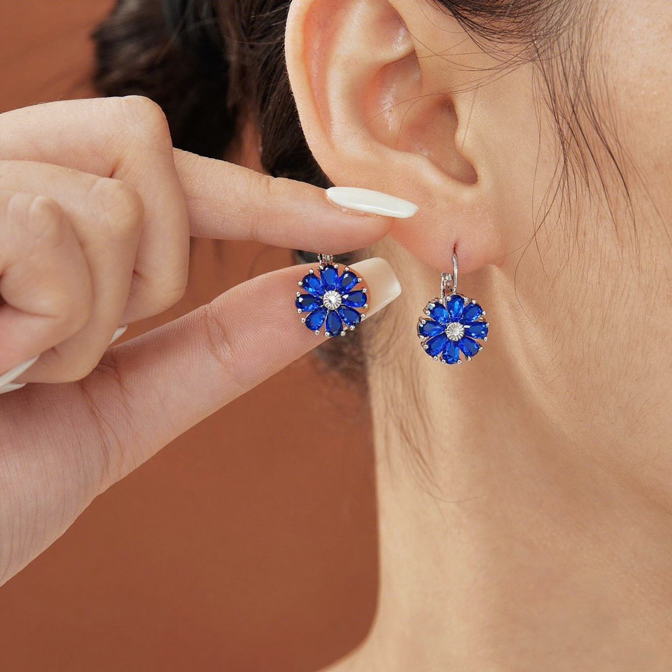 Royal Blue Flower Round Diamond Earrings Simple Fashion Versatile Classic Crystal Zircon Earrings Elegant Women's Earrings