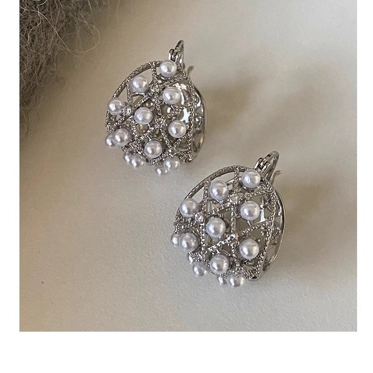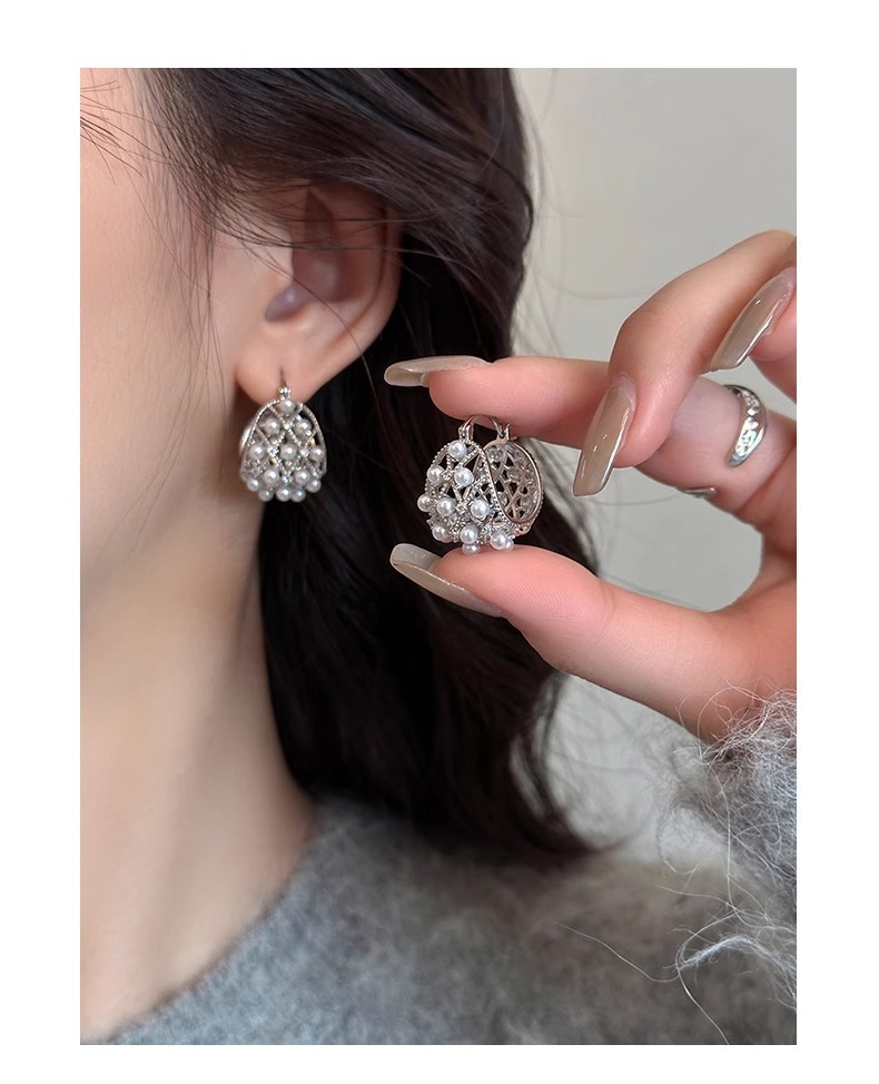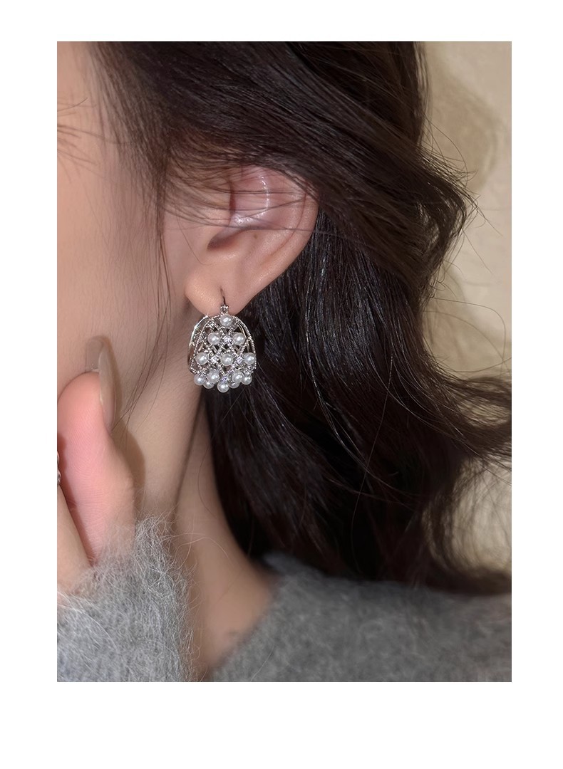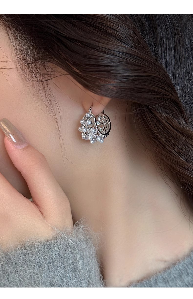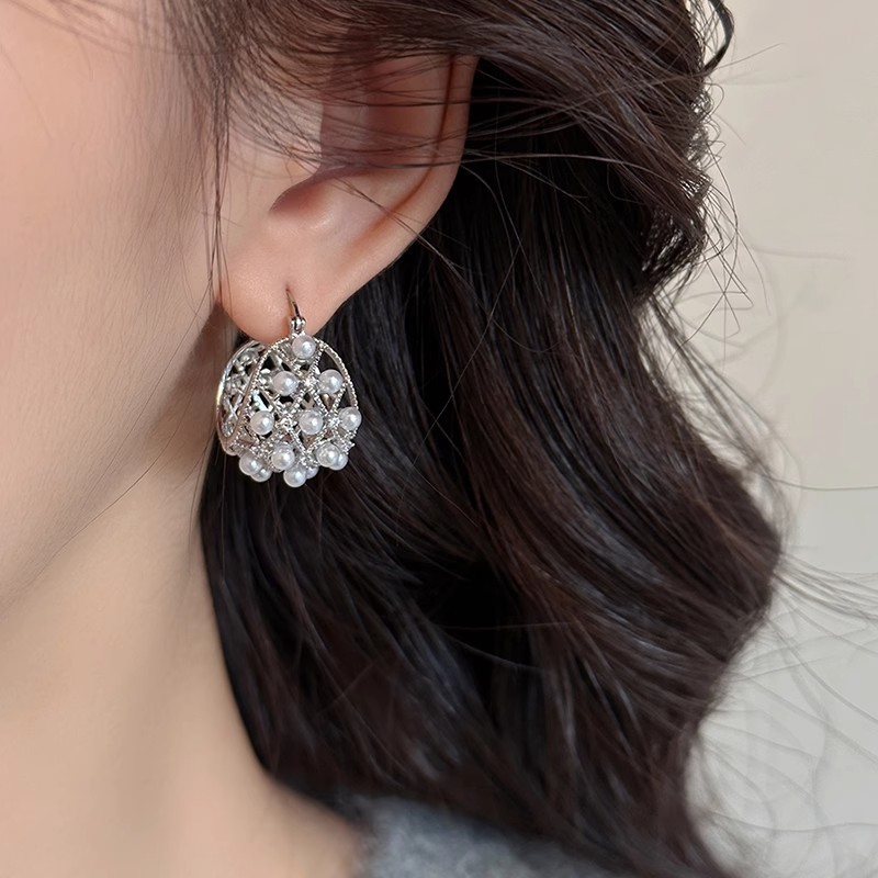 Elegant hollow pearl earrings women's 2024 new high-end high-end ear buckle niche design high-end unique earrings