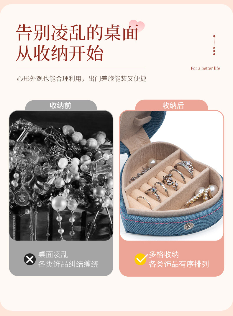 Color: Denim single heart coffee brown lining - pre-order, ships in 15 days