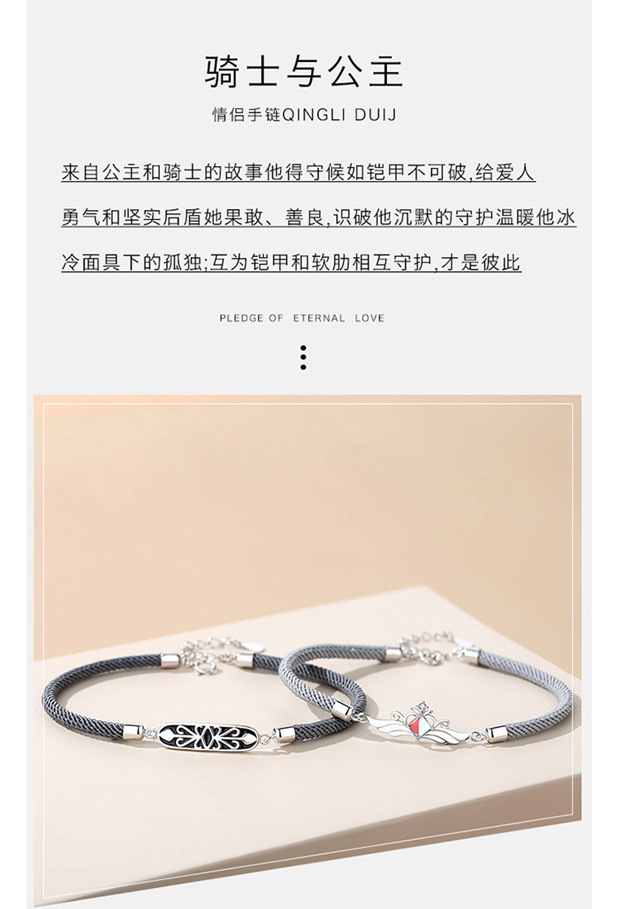 Princess and Knight Couple Bracelet Men and Women Ins Niche Design Bracelet Student Personality Bracelet Gift Wholesale