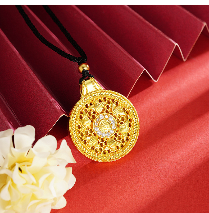 Vietnam Shajin Luohan disc micro inlaid copper alloy black rope necklace Yiwu jewelry Chinese wind supply manufacturers wholesale