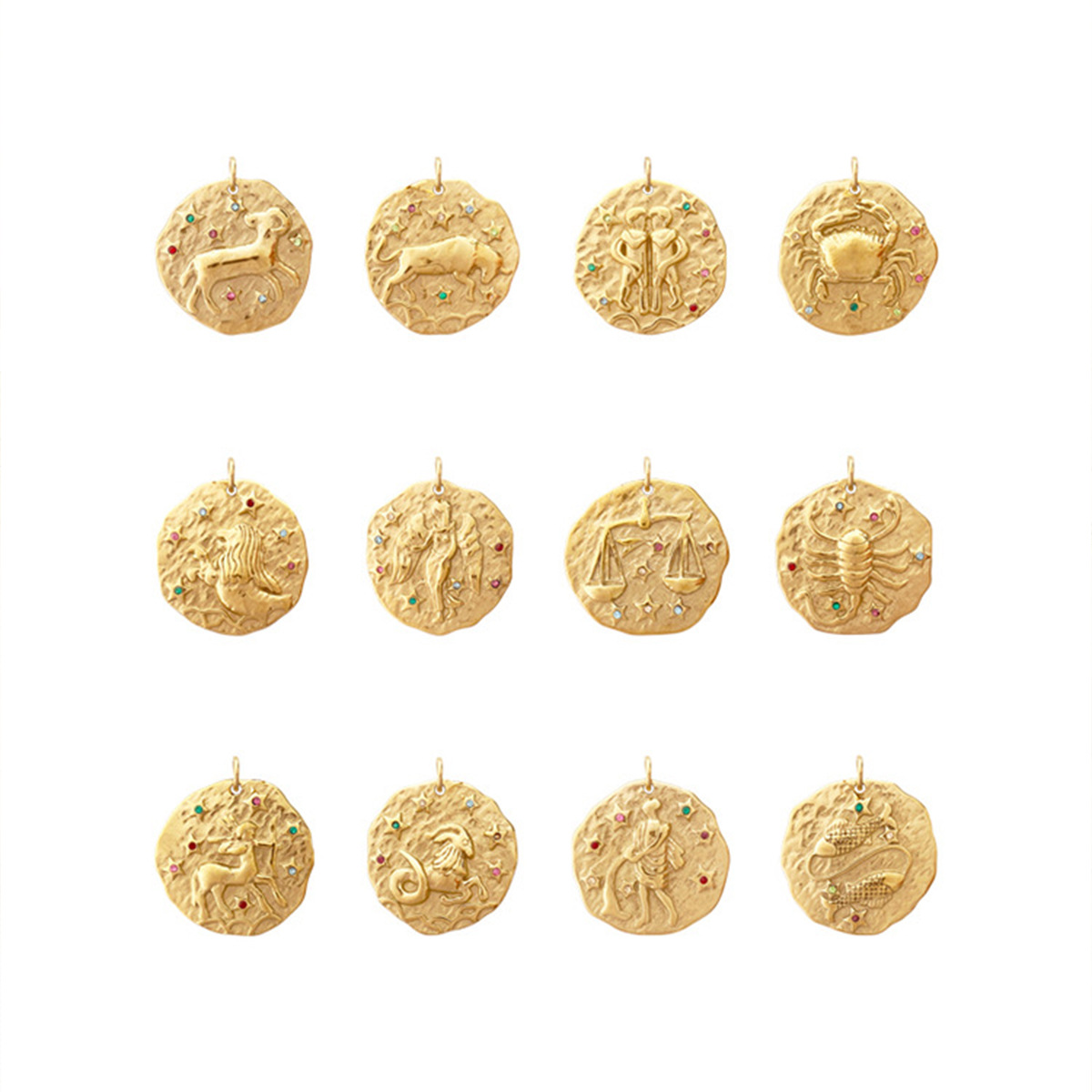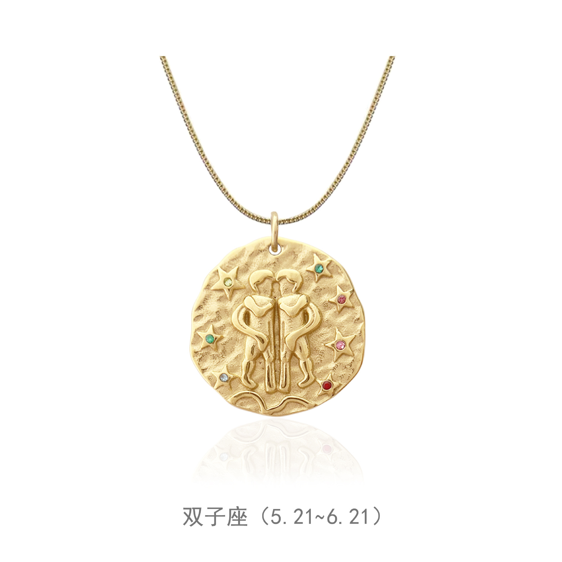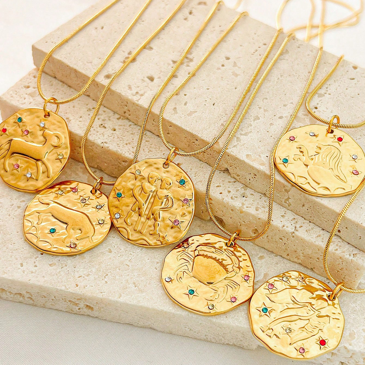 New Cross-border Explosions Diamond-encrusted Stainless Steel Round Brand 12 Constellation Pendant Simple Personality Snake Chain High-grade Necklace for Women