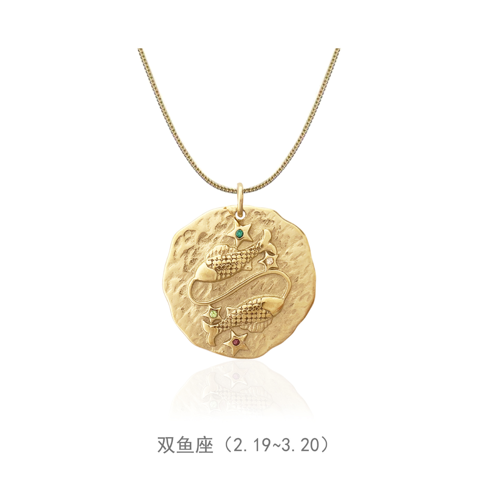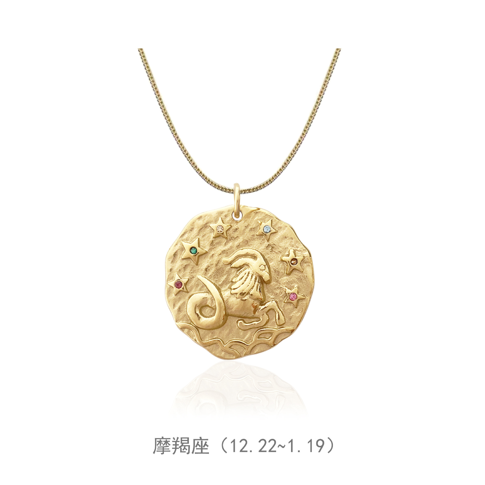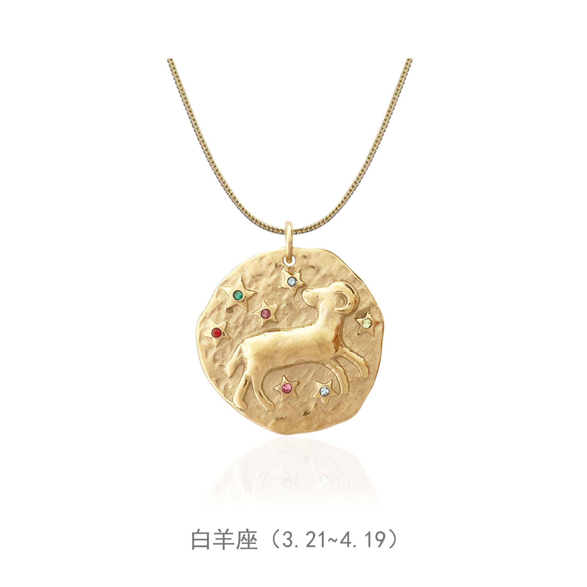 New Cross-border Explosions Diamond-encrusted Stainless Steel Round Brand 12 Constellation Pendant Simple Personality Snake Chain High-grade Necklace for Women