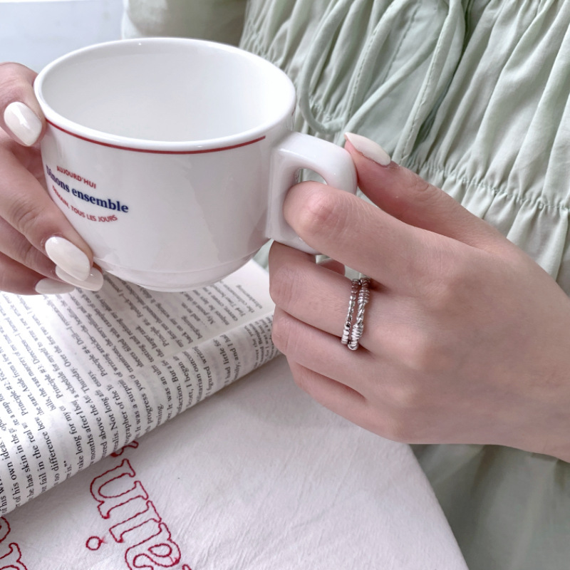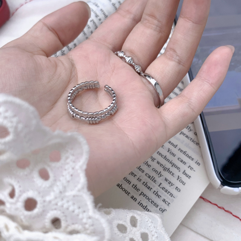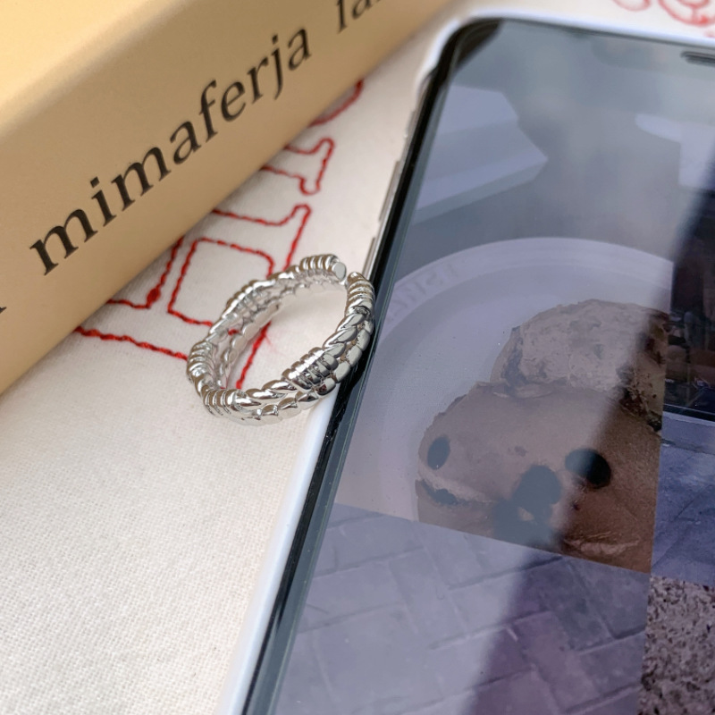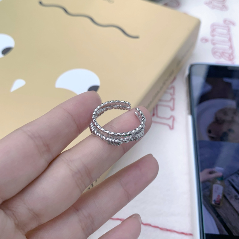 Japanese and Korean-style Mori Style All-match Open-mouth Ins Style Color-free Double-layer Hemp Rope Woven Ring High-end Light Luxury Niche Women