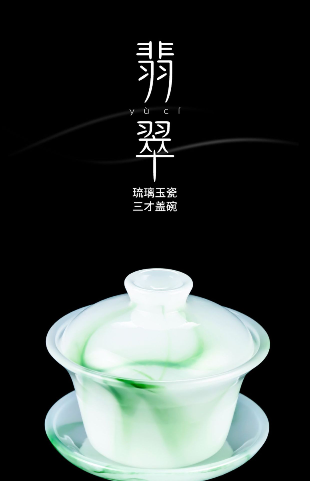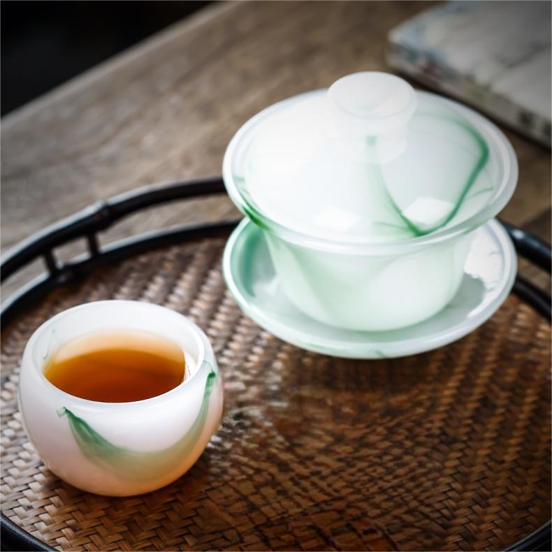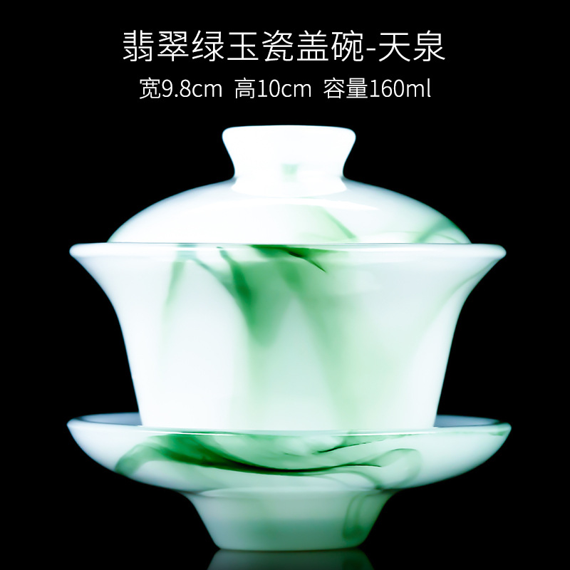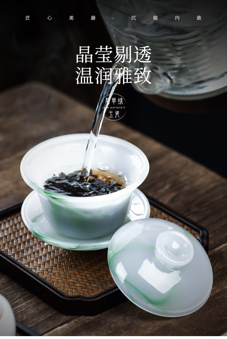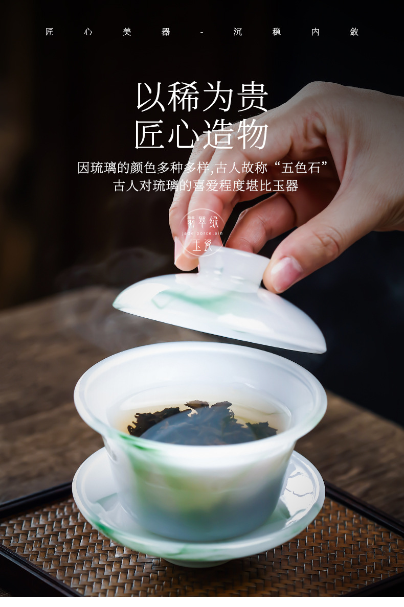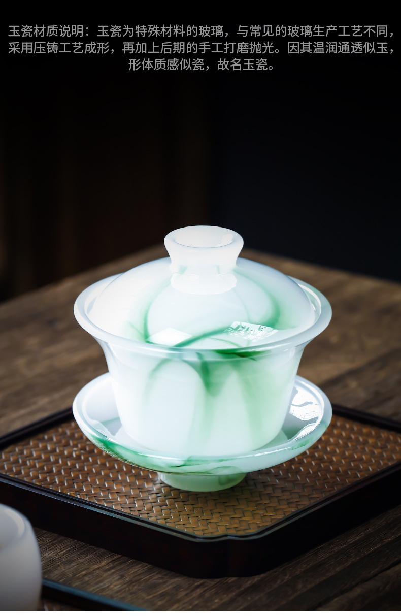 Jade Emerald Green Ink Jade Porcelain Sancai Gai Bowl Tea Bowl Tea Maker Thickened Glass Tea Cup Household Kung Fu Tea Set