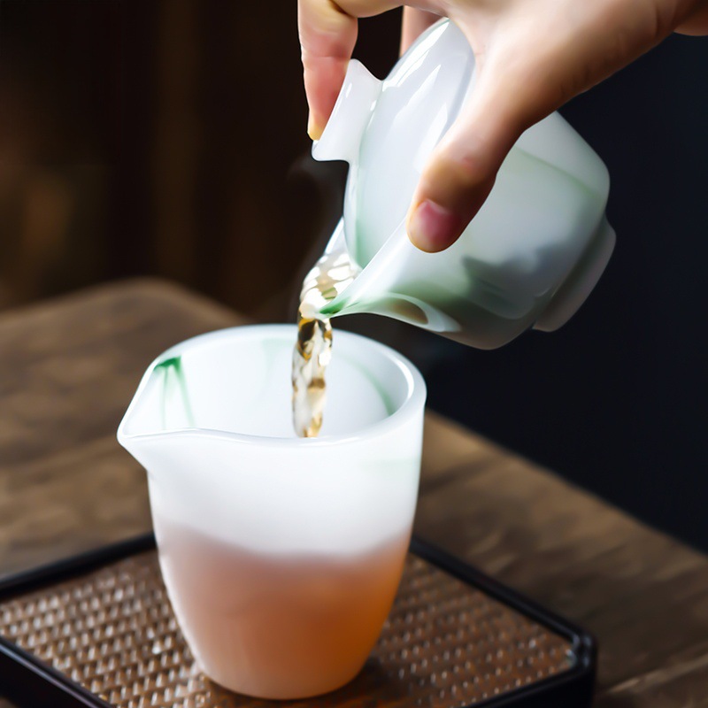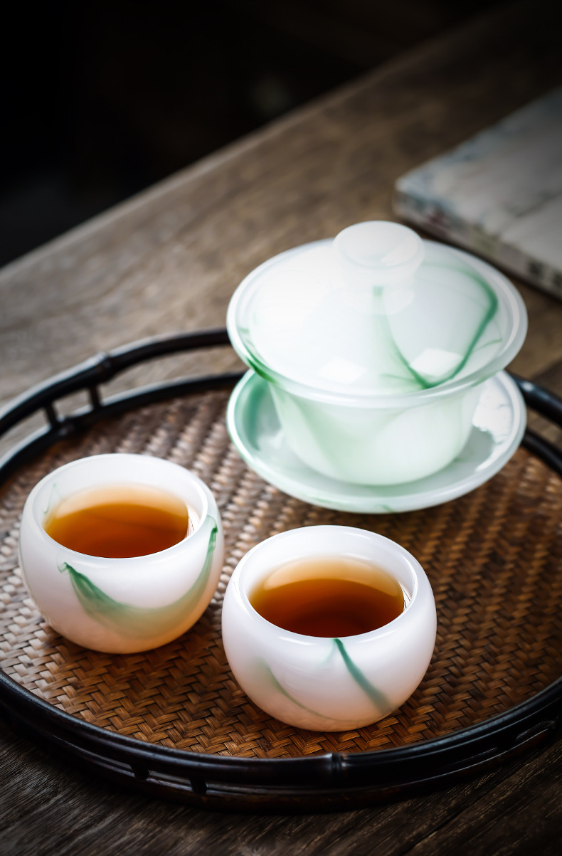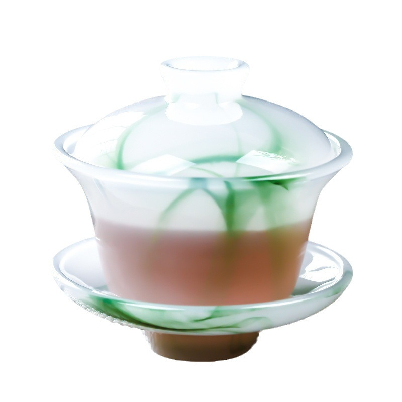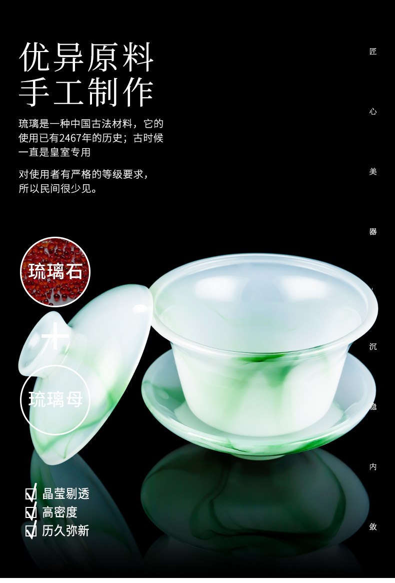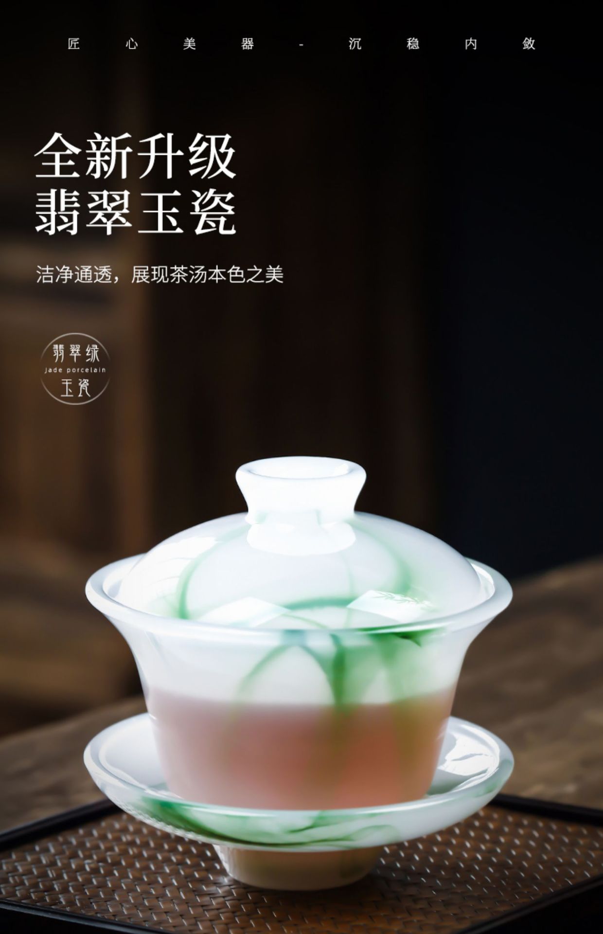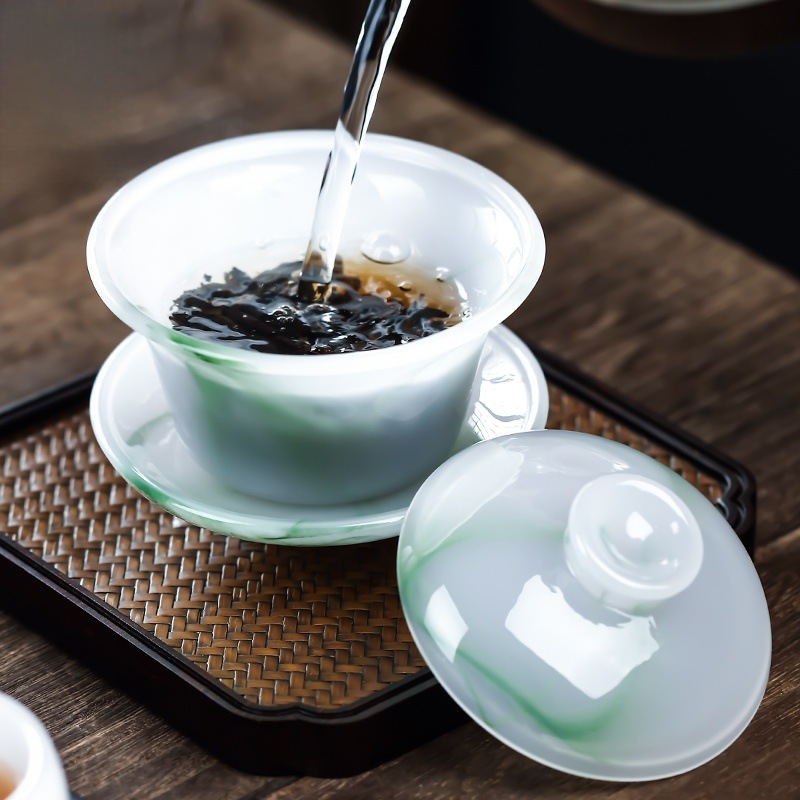 Jade Emerald Green Ink Jade Porcelain Sancai Gai Bowl Tea Bowl Tea Maker Thickened Glass Tea Cup Household Kung Fu Tea Set