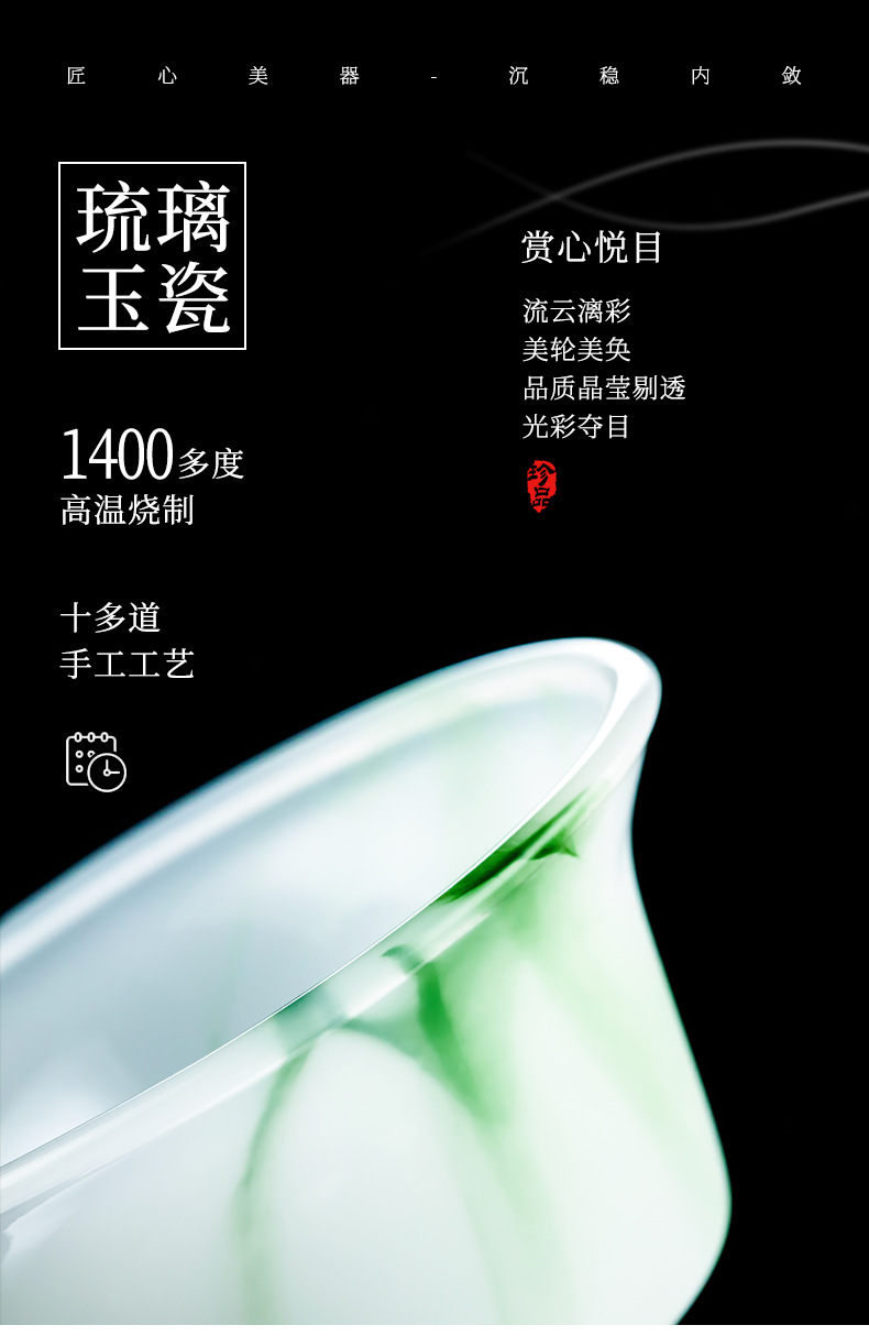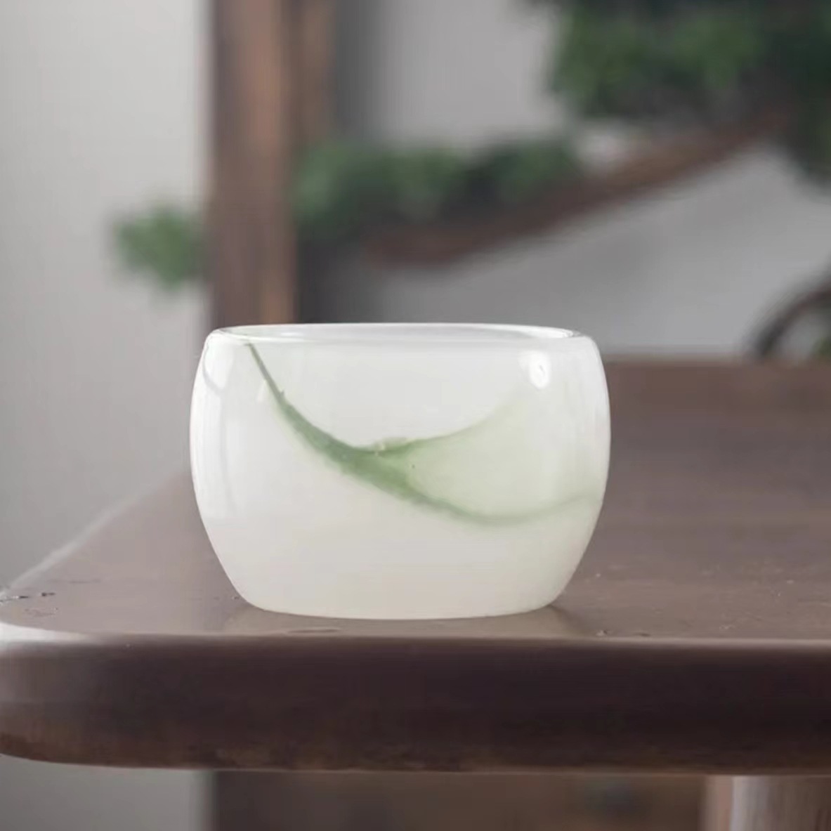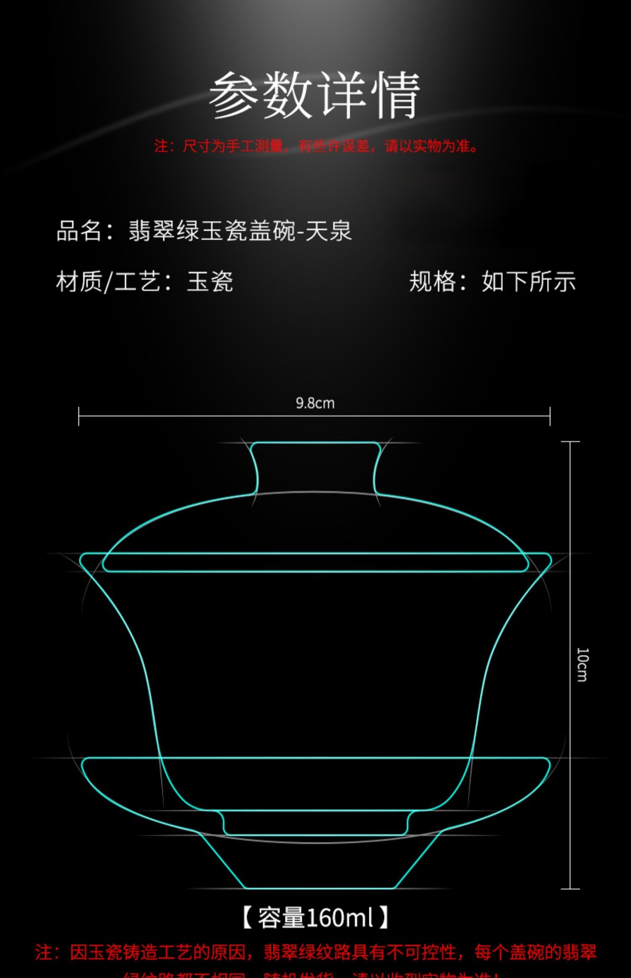 Capacity: Emerald green jade porcelain cover bowl single cup