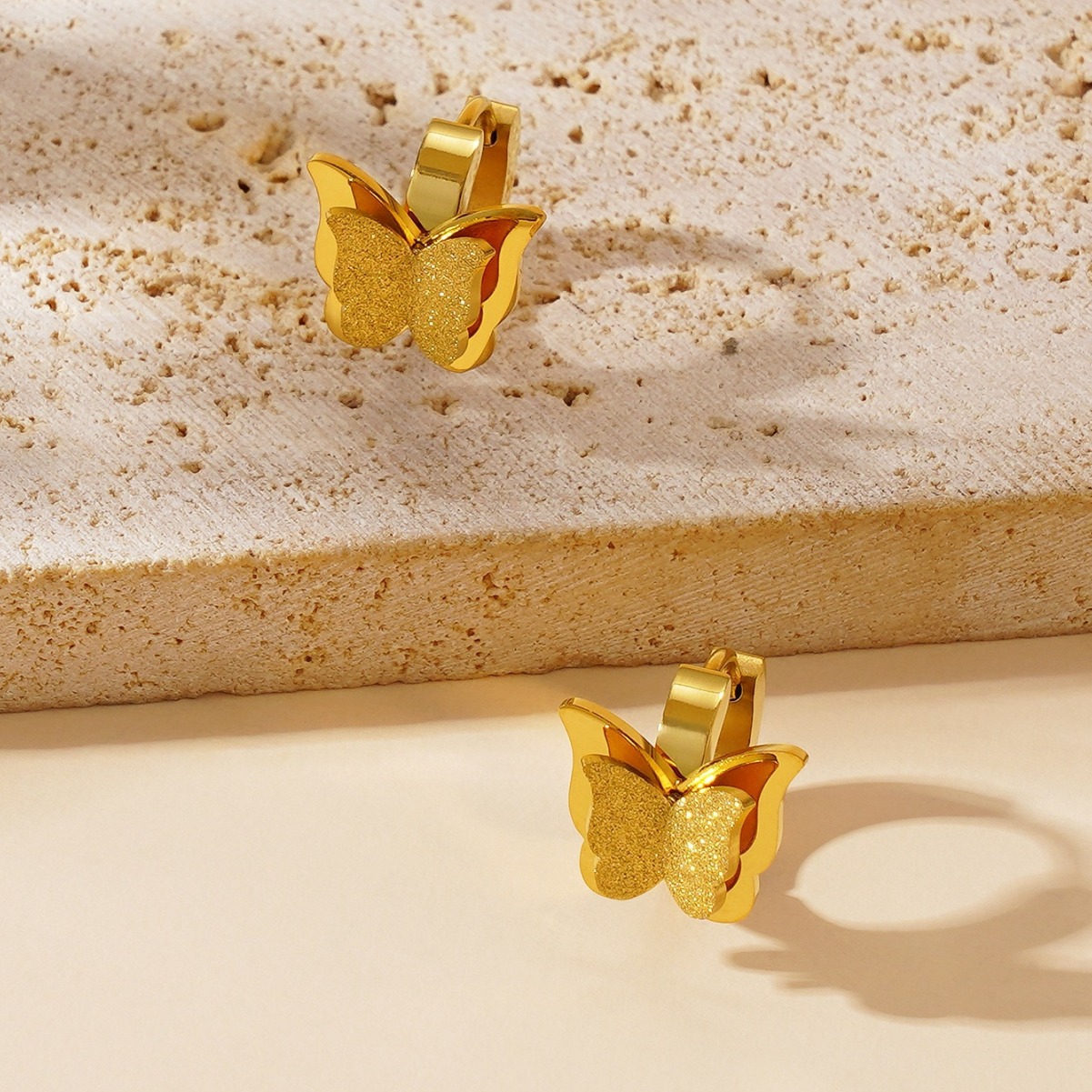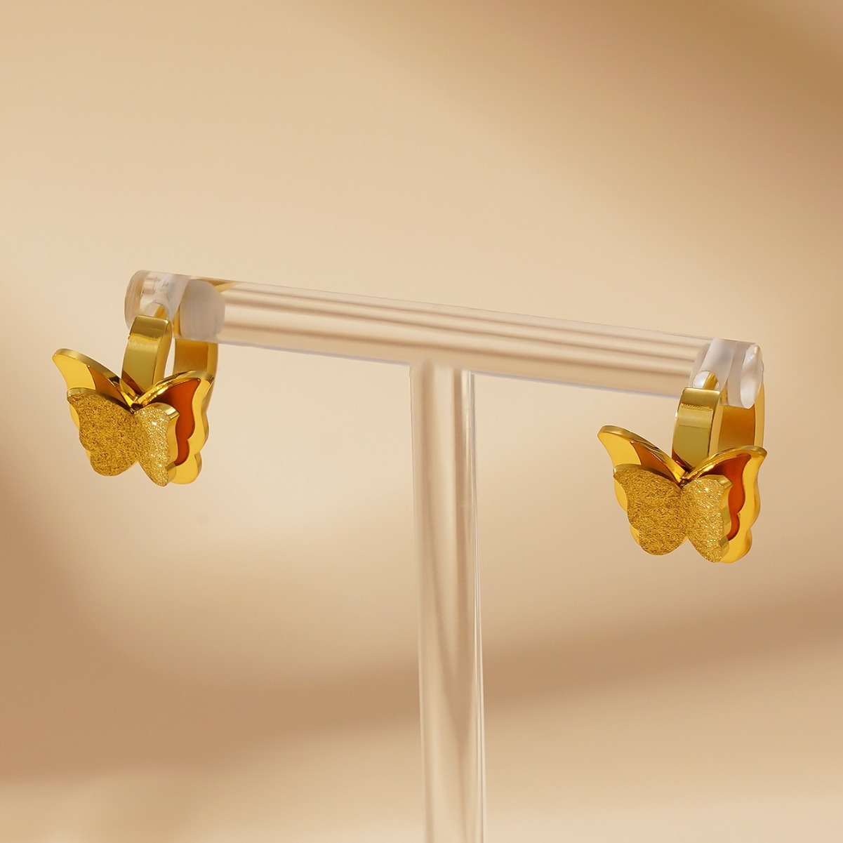 Simple Fashion Personalized Titanium Steel Butterfly Ear Buckle Women's Elegant Popular Earrings Without Falling Gold Light Luxury Light Luxury Jewelry
