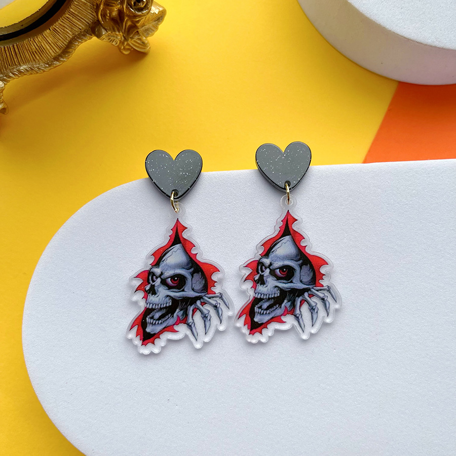 Amazon Halloween Series Earrings Horror Scary Sickle Ghost Skull Acrylic Earrings Earrings New