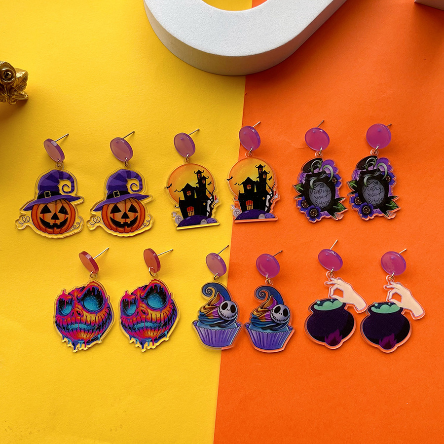 Europe and the United States cross-border new Halloween earrings personality creative simulation funny horror skull ghost pumpkin earrings