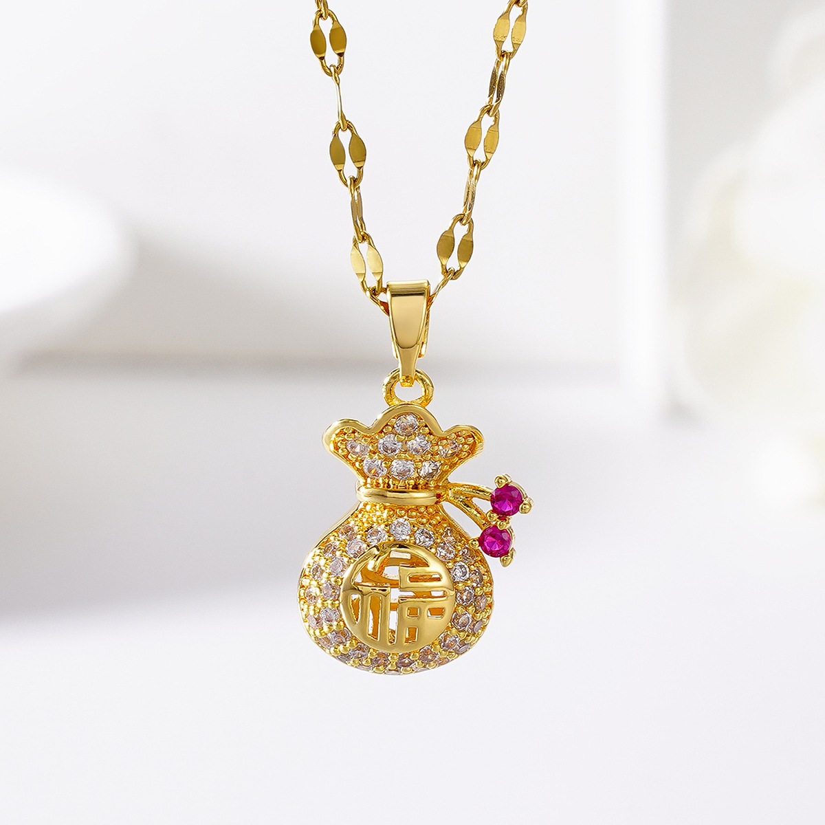 Trendy Elegant New Hollow Money Bag Titanium Steel Necklace Diamond Inlaid Fashion Necklace Women's Fortune Bag Clavicle Chain