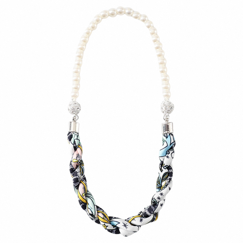 High-end Pearl Magnetic Buckle Long Necklace Silk Scarf Women's All-match Decorative Clavicle Chain Spring and Summer Small Scarf Vintage