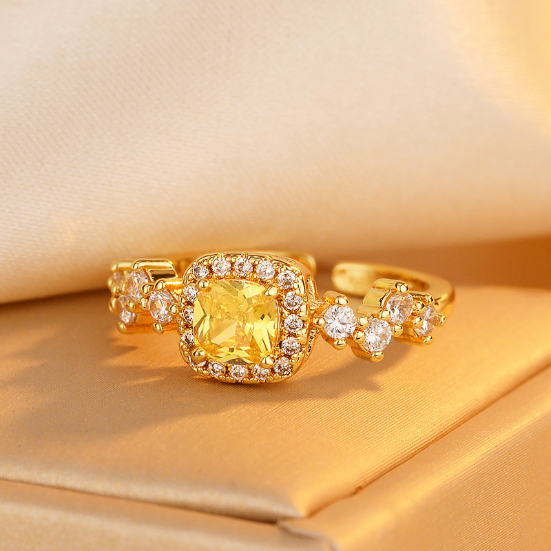 High-grade Light Luxury Zircon Square Sugar Ring for Women Niche Design Personalized Simple All-match Elegant Ring Accessories