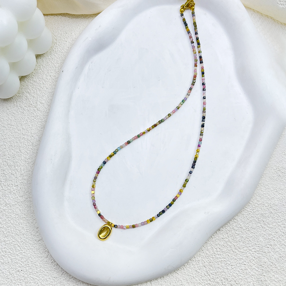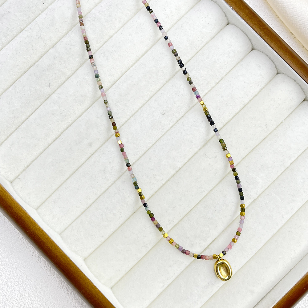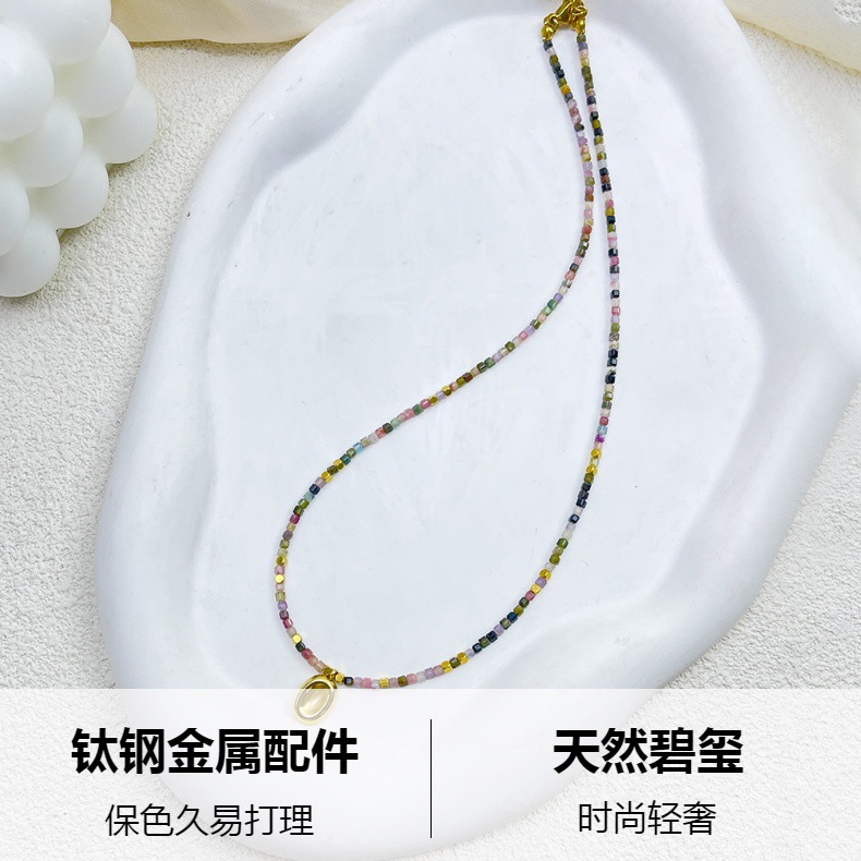 Fashion New Trendy Simple Color Tourmaline Sugar Necklace Simple Titanium Steel Pendant Exquisite All-match Neckchain Clavicle Chain