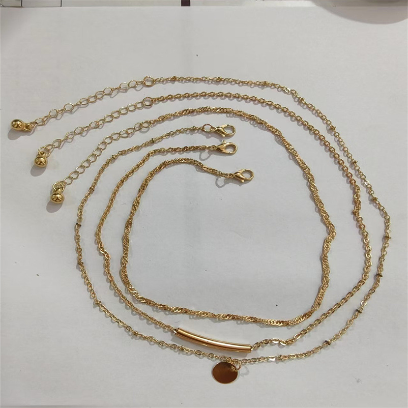 Ladies fashion double neck chain handmade coin tube star pearl pendant adjustable gold plated necklace suit wholesale