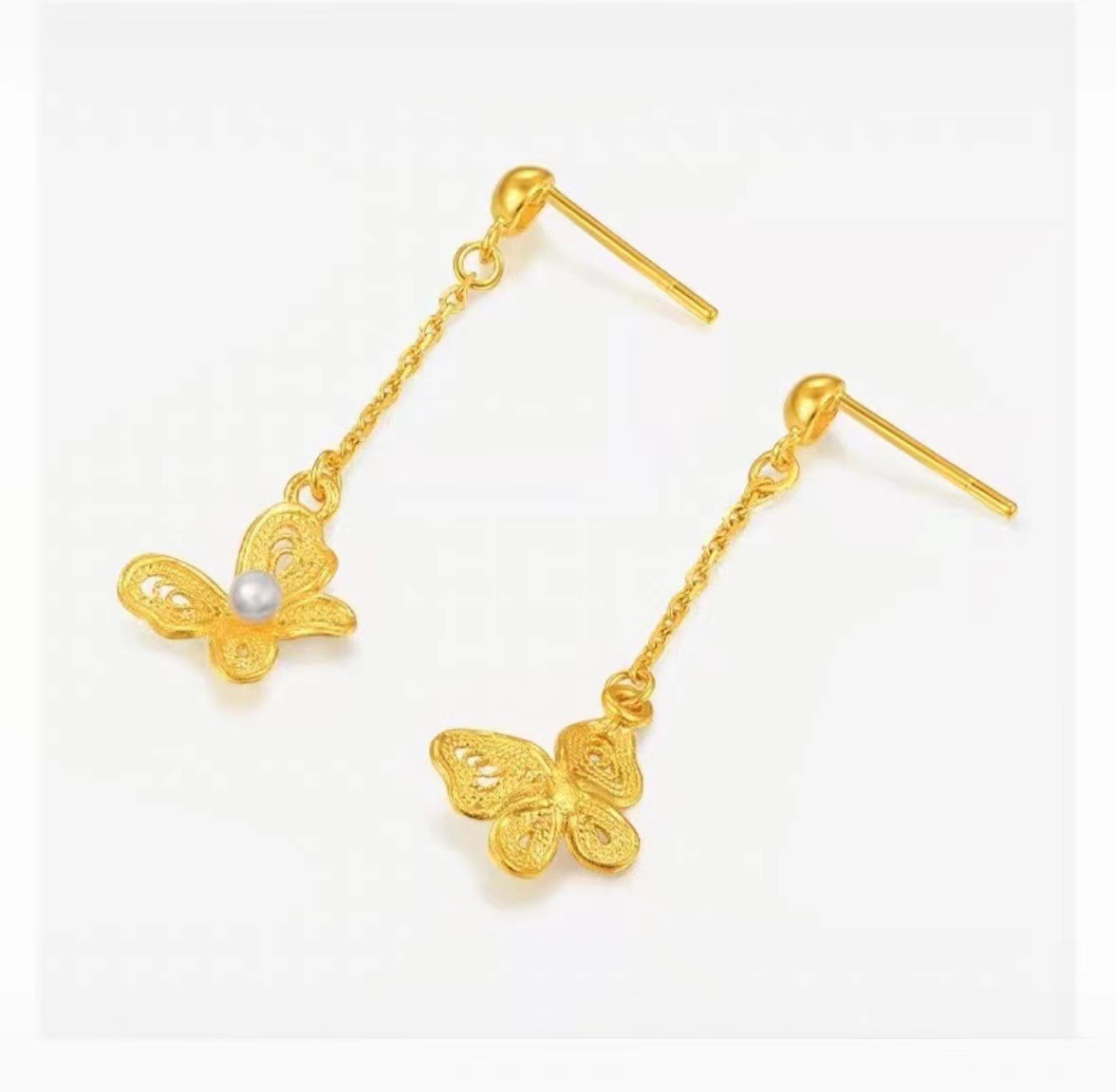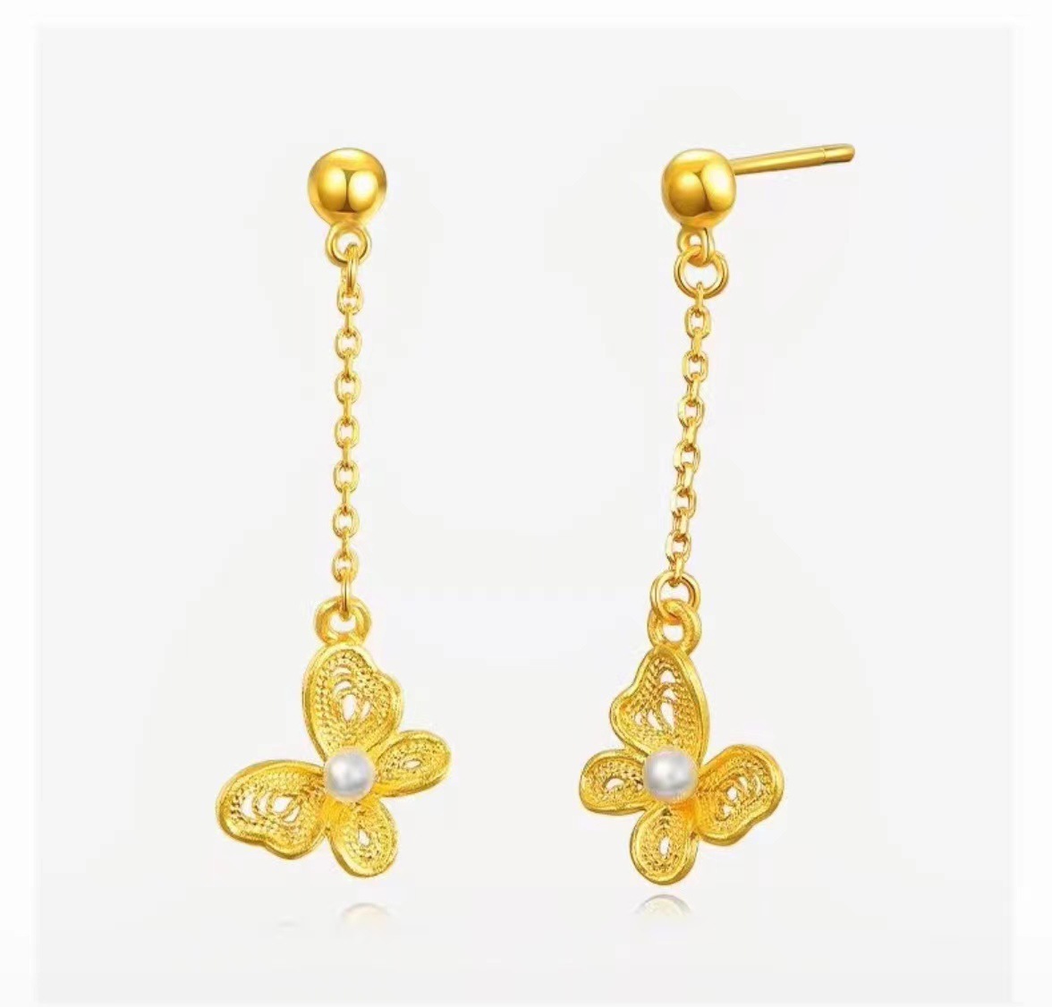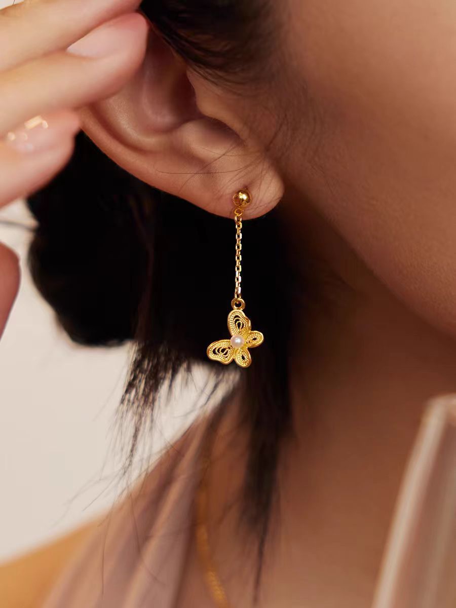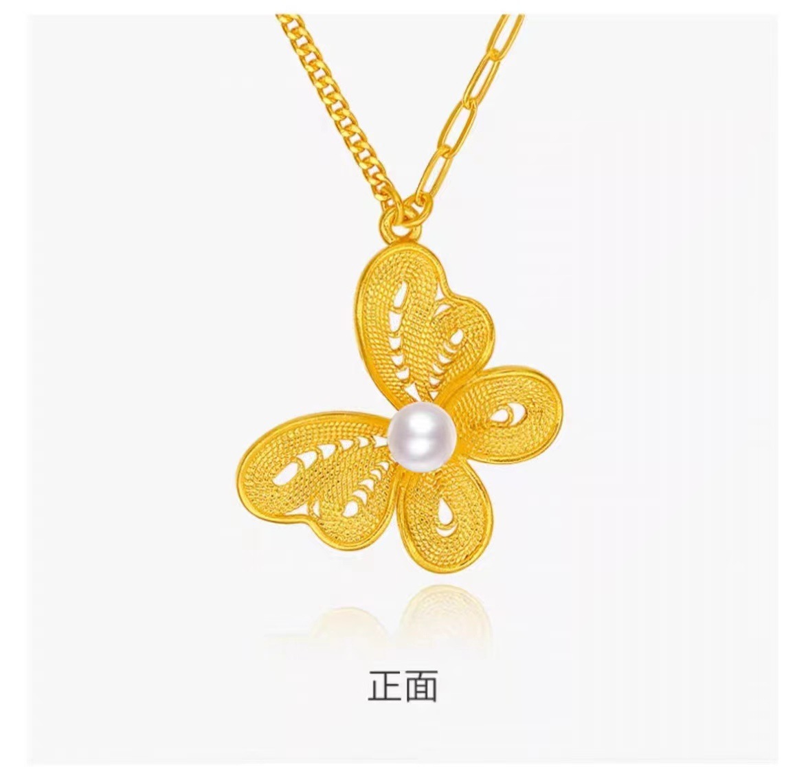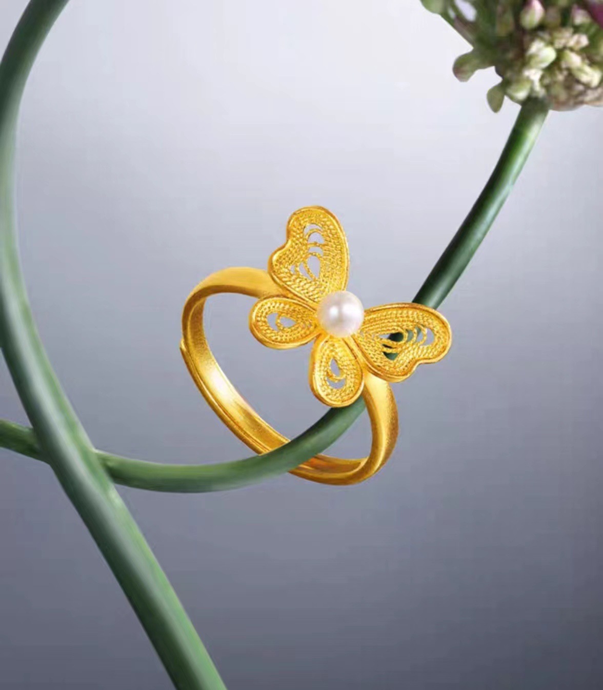 New Butterfly Love Flower Series Set Necklace Imitation Gold Butterfly Inlaid Shell Bead Bracelet Ring Butterfly Earrings Three-piece Set