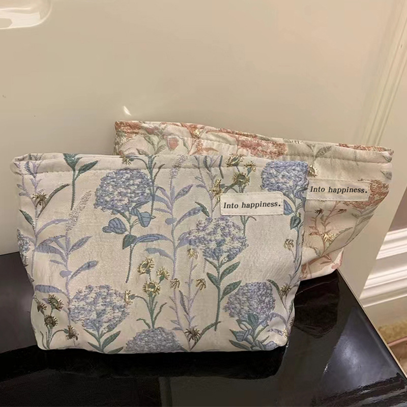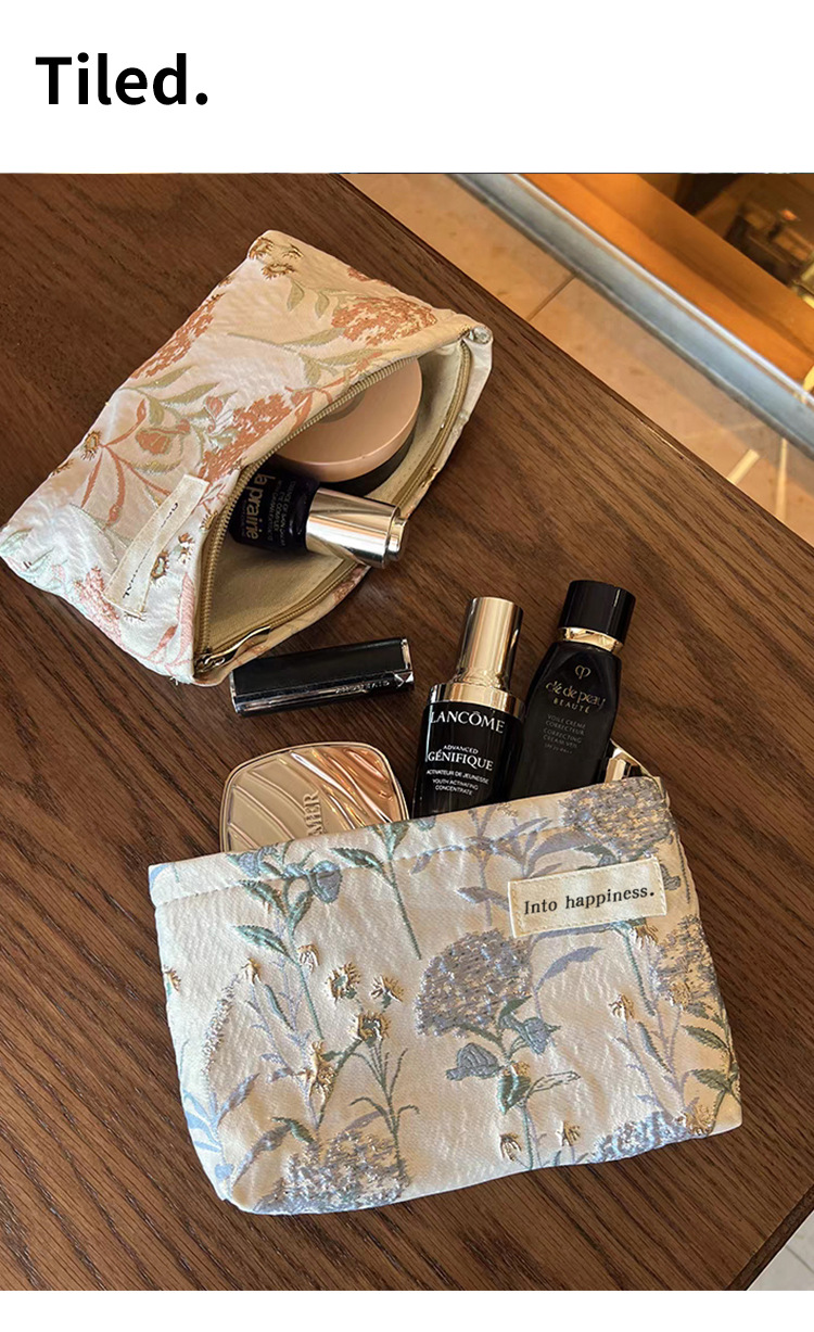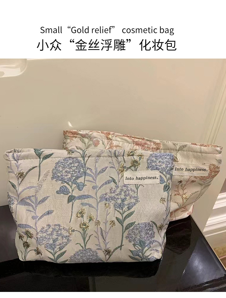 Small Crowd Gold Embossed Cosmetic Bag Large Capacity Storage Bag Lipstick Washing Portable High-end Canvas Bag