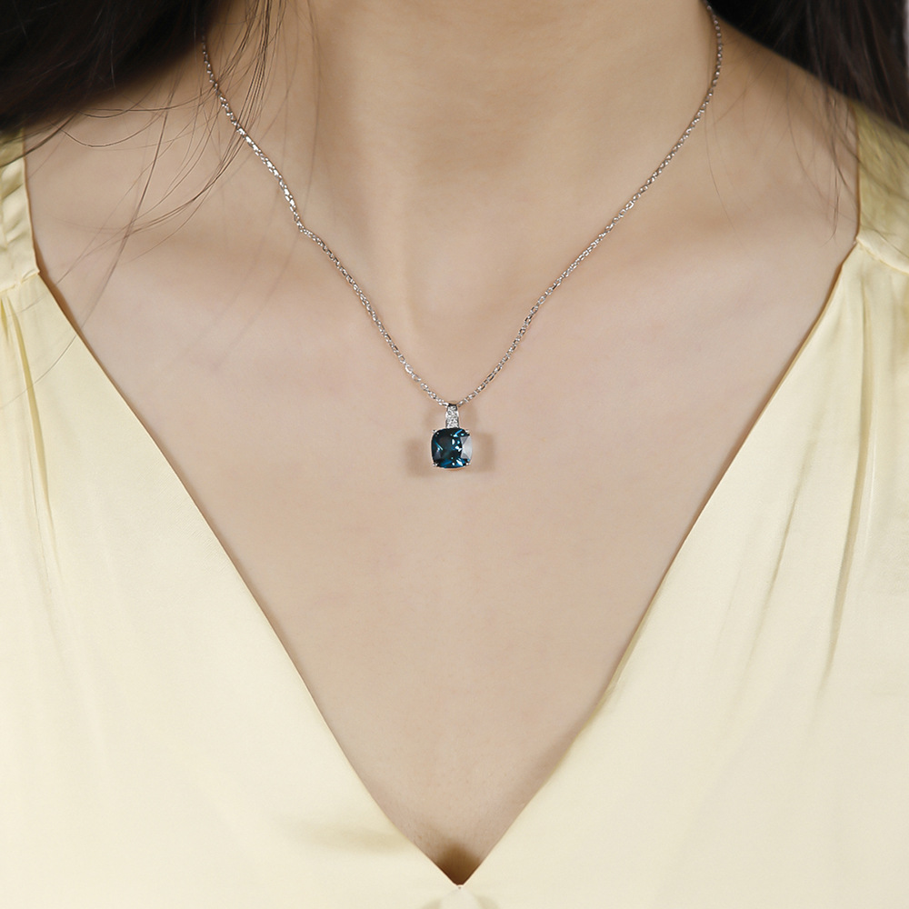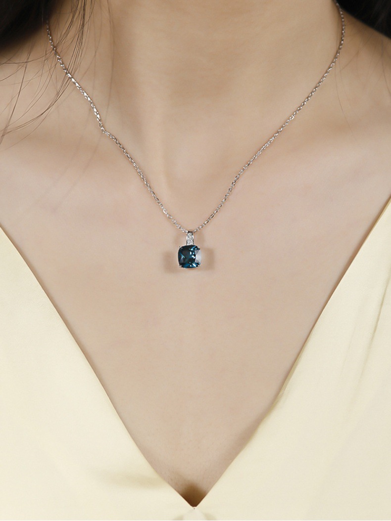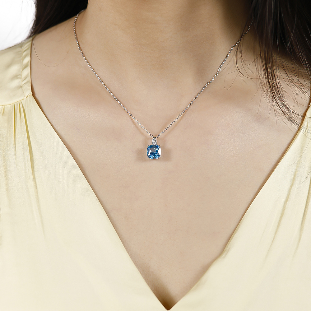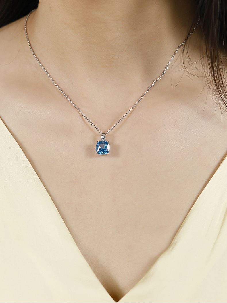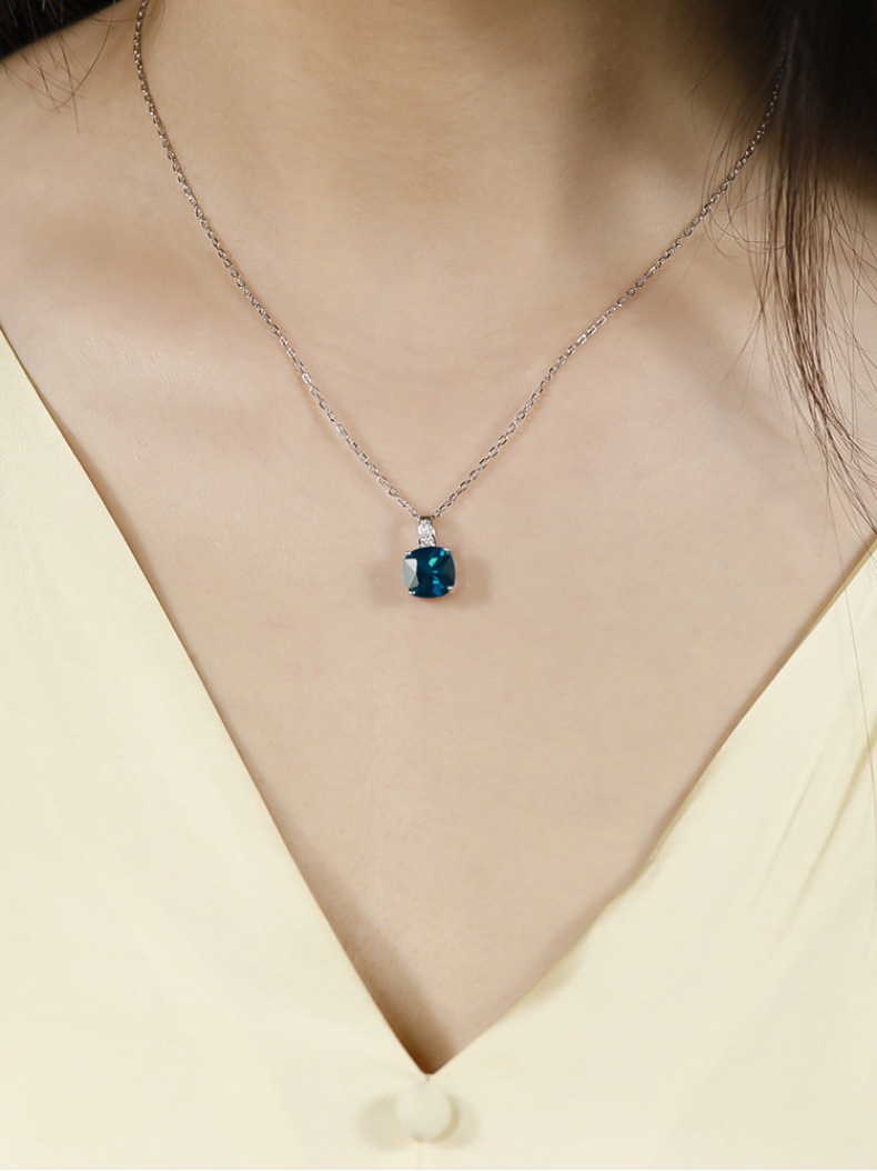 Cross-border New Sugar Color Treasure 925 Silver Necklace Women Stacked Wear Fashion Simple Clavicle Chain Princess Square Pendant