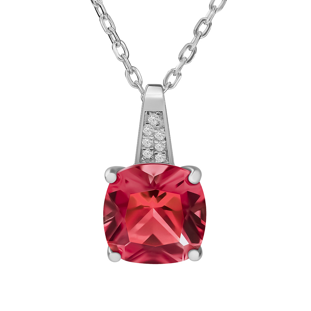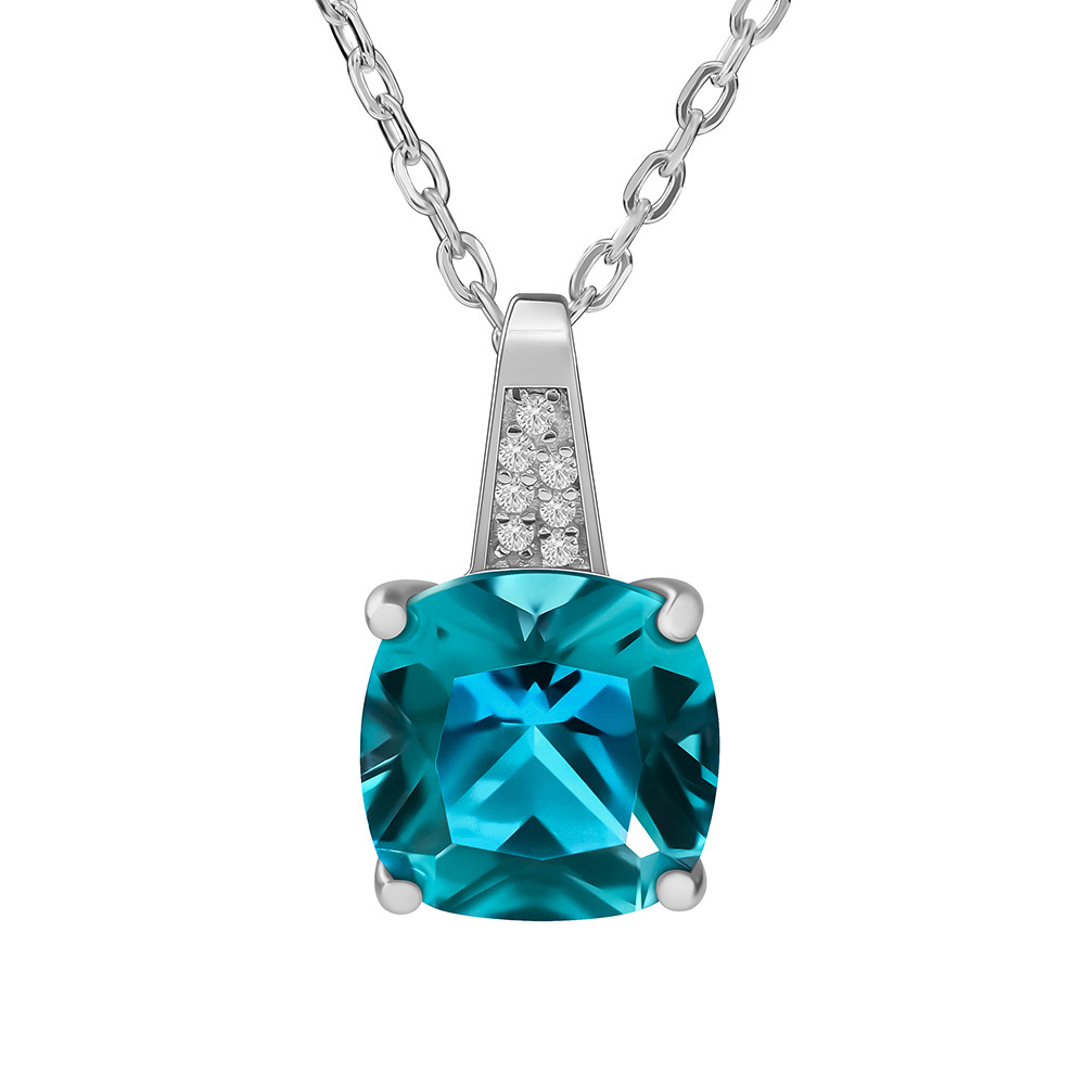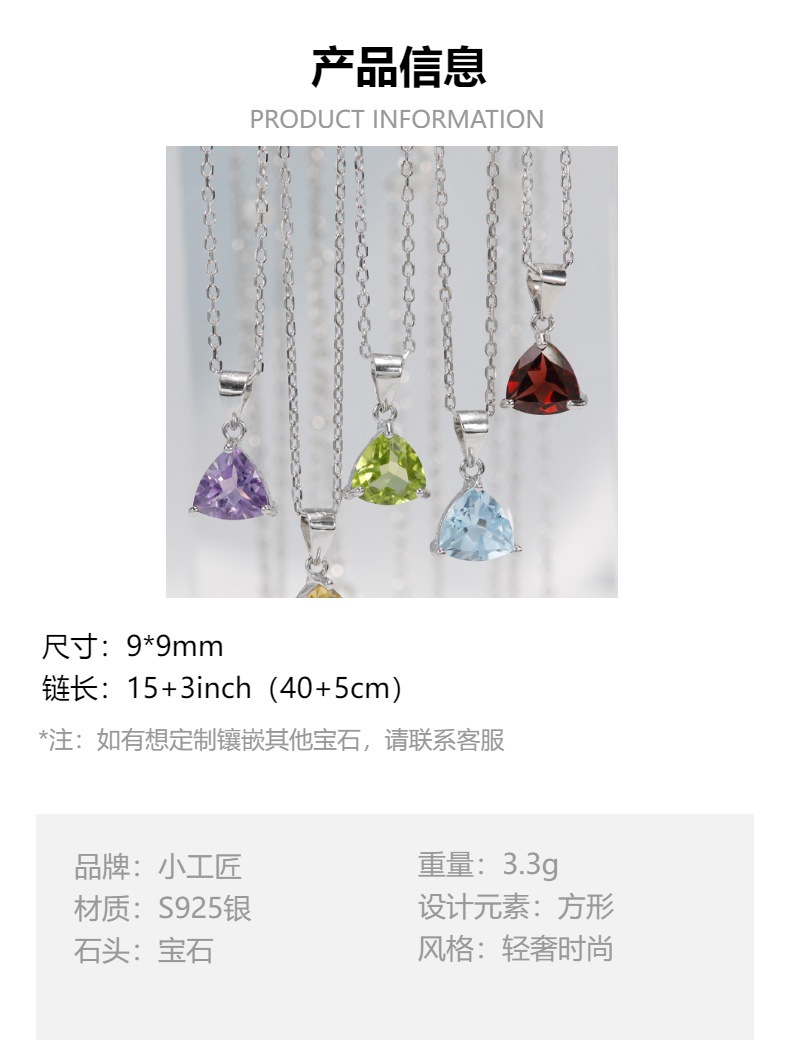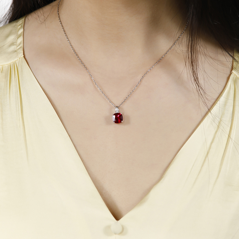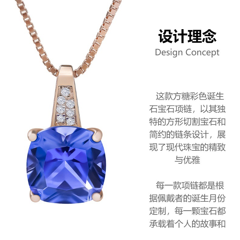 Cross-border New Sugar Color Treasure 925 Silver Necklace Women Stacked Wear Fashion Simple Clavicle Chain Princess Square Pendant
